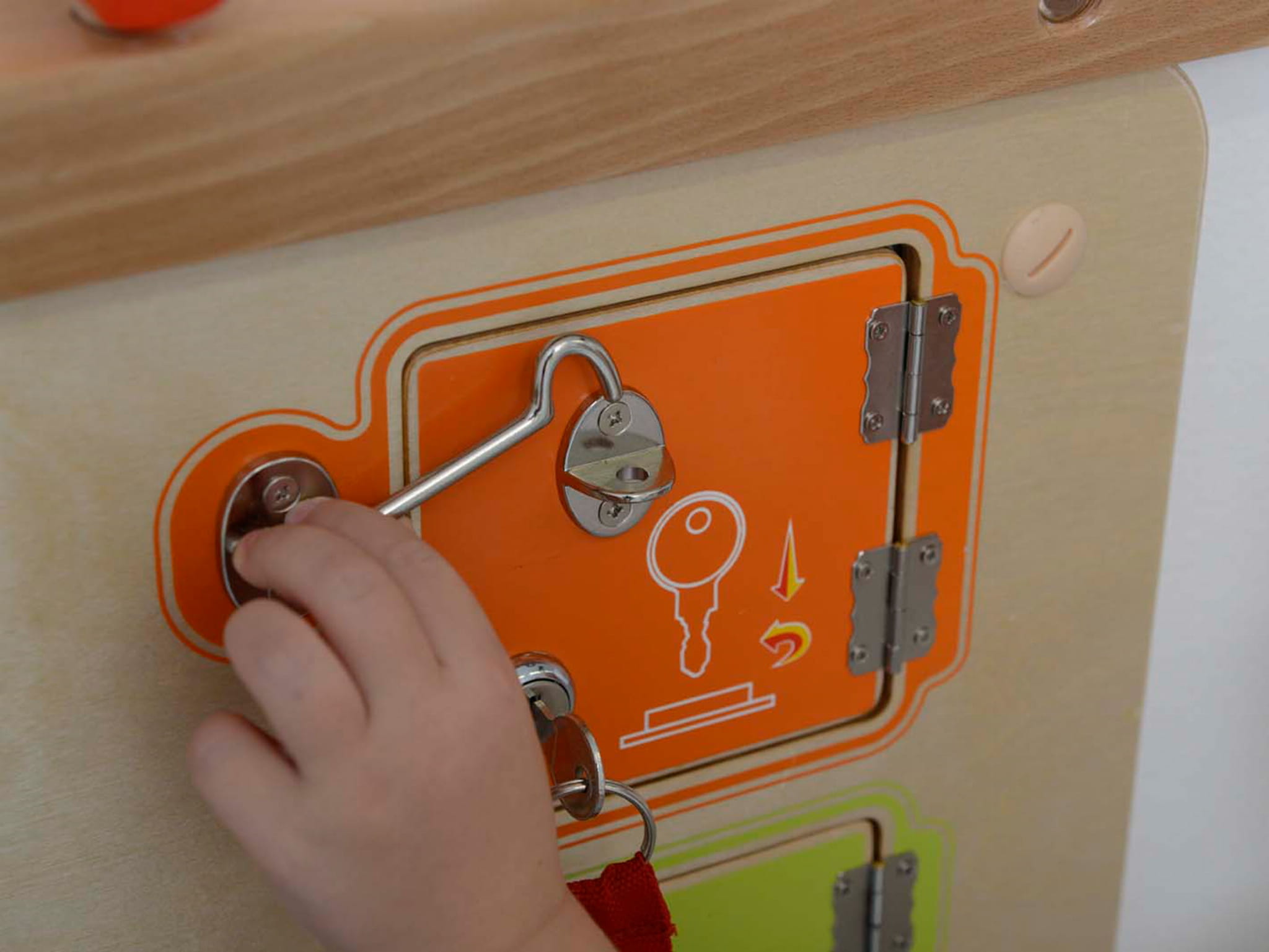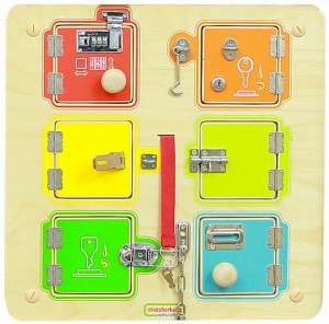 Oferta zawiera jedna tablicę manipulacyjną Nauka Otwierania i Zamykania Zamków.