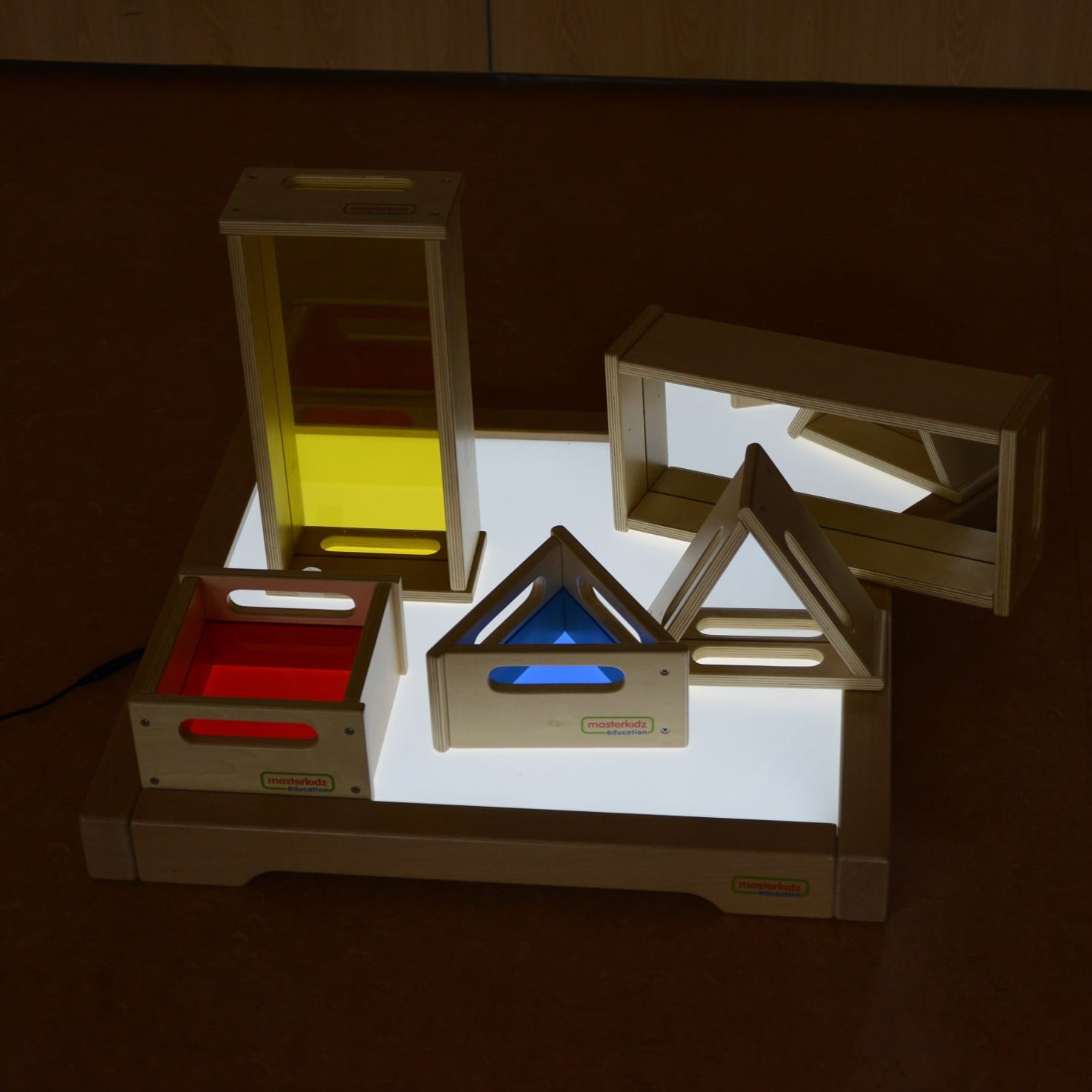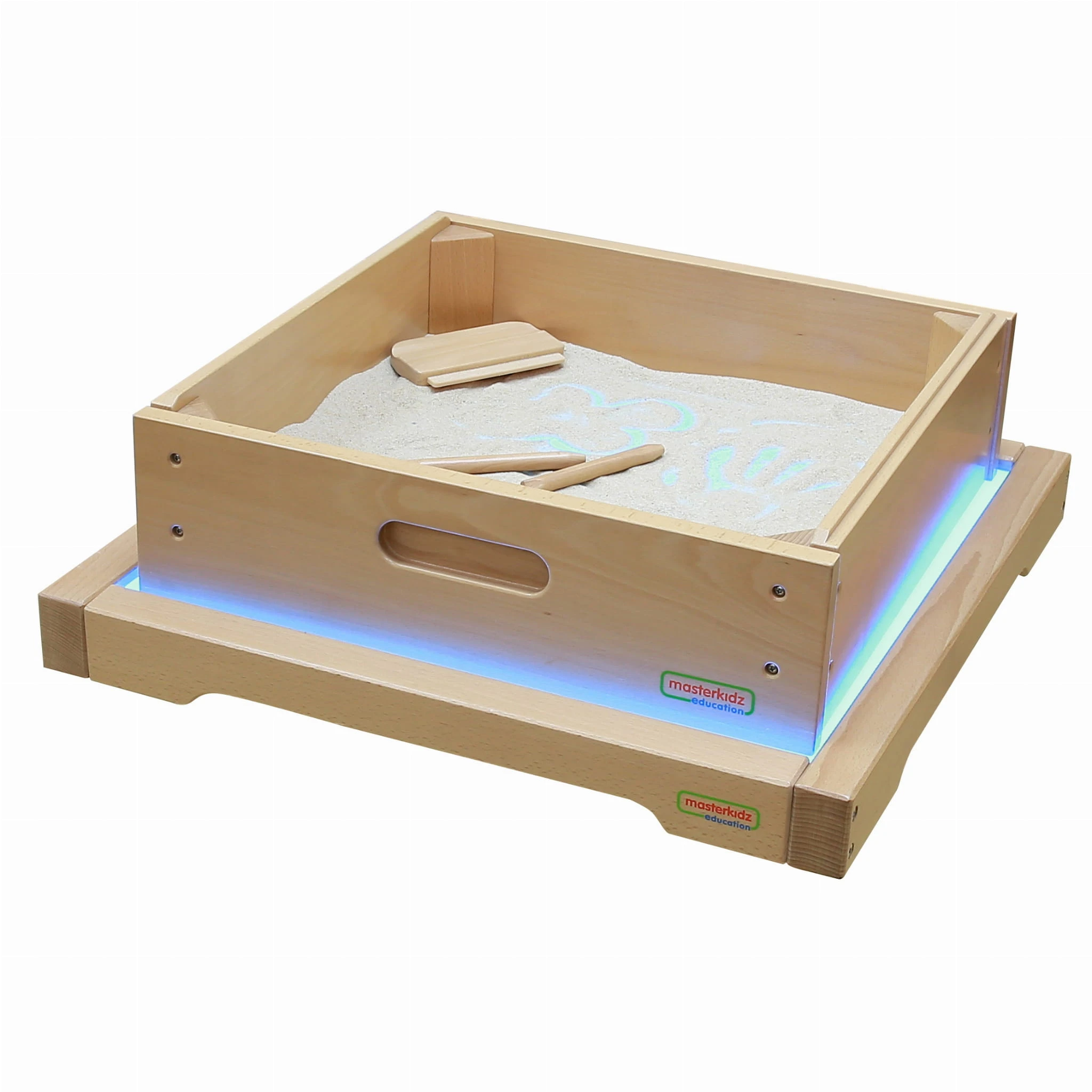 Solidny drewniany panel LED z możliwością zmiany koloru renomowanej firmy Masterkidz. Umożliwia różne rodzaje działań wspierających rozwój kreatywności, np. mieszanie kolorów oraz inne metody nauki systemem STEM. Piękne efekty można uzyskać, gdy światło przebija różne materiały, takie jak liście, papier, taca z piaskiem itp.