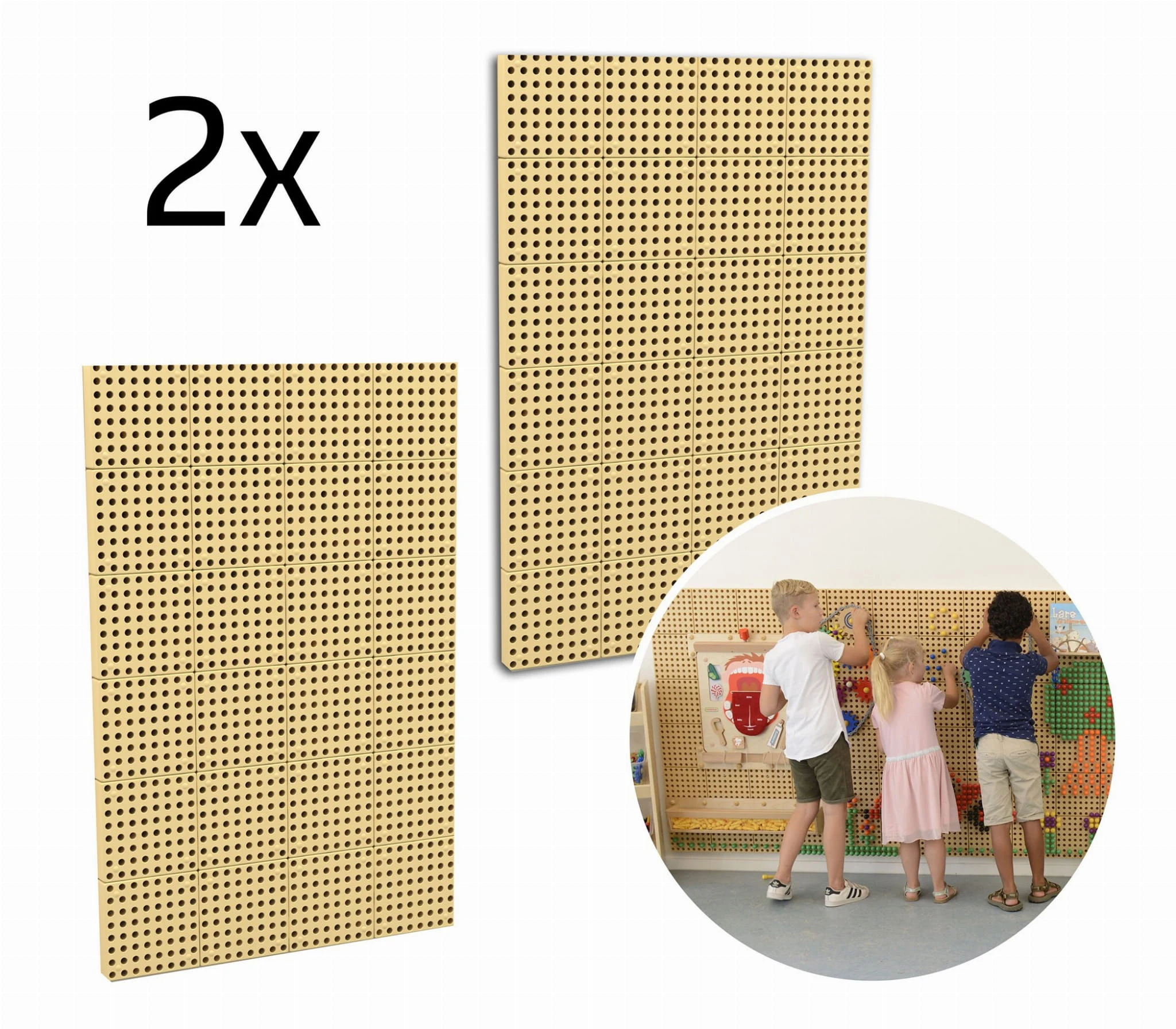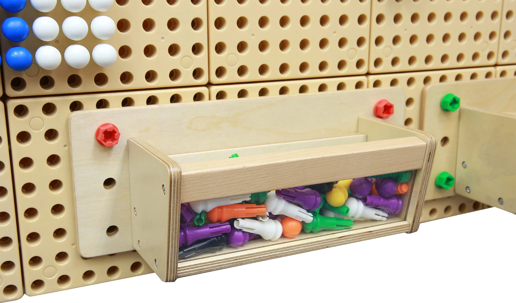 - - Uniwersalność – gęsto rozmieszczone otwory są kompatybilne z szeroką gamą edukacyjnych akcesoriów, od pikselowych mozaik po ruchome zębatki.