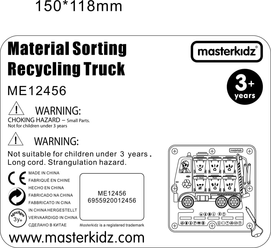 MASTERKIDZ Tablica Magnetyczna Segregowanie Odpadów Ciężarówka do Recyklingu Montessori