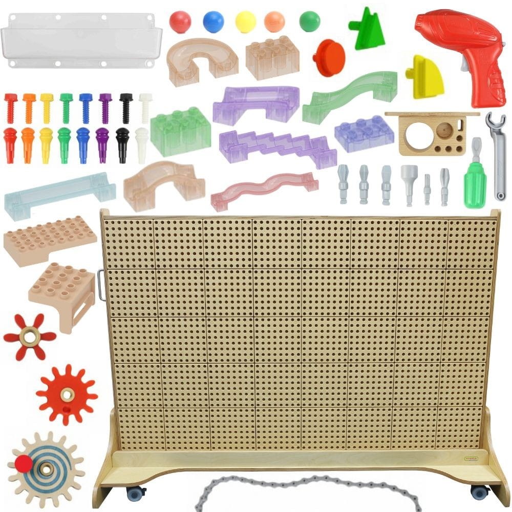 MASTERKIDZ Wolnostojąca Ściana STEM + Akcesoria Kołki Tace Klocki Narzędzia