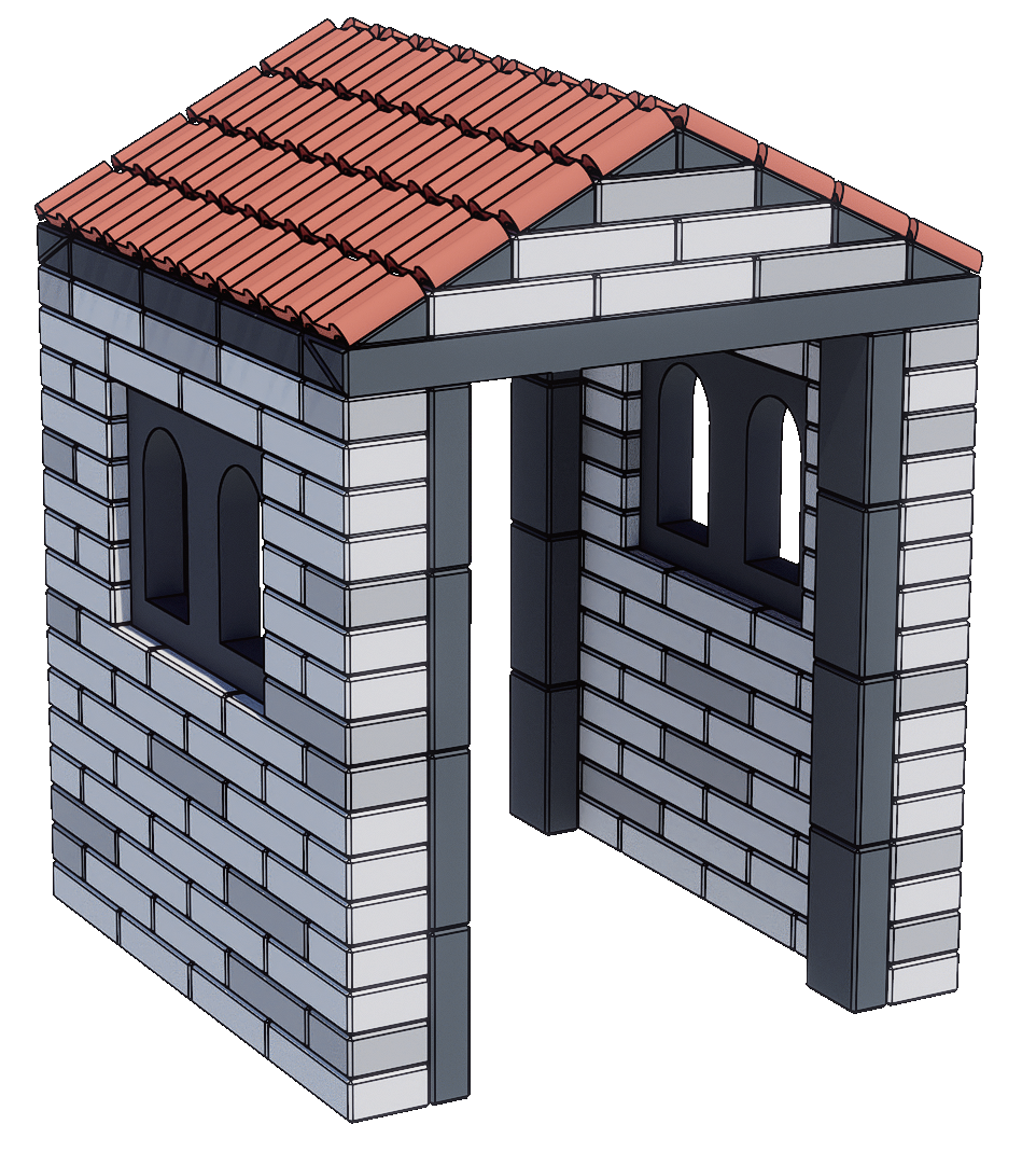 Wymiary produktu: Belka trójkątna: 96 x 12 x 6 (cm) / Okno łukowe: 24 x 36 x 6 (cm) / Dach: 12 x 12 x 3 (cm)