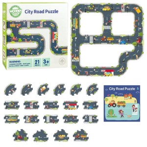 Miejskie Puzzle Drogowe 21 el. – Układanka Edukacyjna dla Dzieci WOOPIE