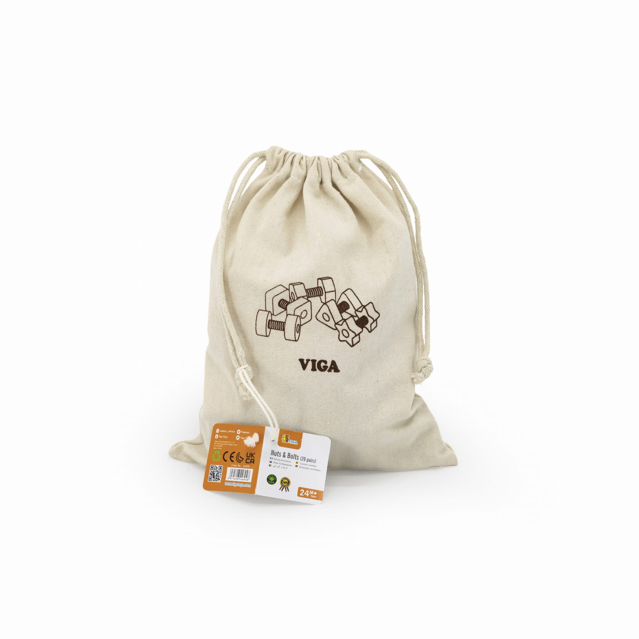 Nakrędki i i Śrubki to zabawka zręcznościowa marki VIGA polegająca na wkręcaniu, wykręcaniu kolorowych kształtów. Świetna zabawa dla dziecka podczas mieszania i dopasowywania a przy okazji ucząca liczenia, kolorów i kształtów. Wkręcanie i odkręcanie poprawi u malucha zręczność manualną i wzrokową koordynację ruchową Zestaw zawiera 40 elementów, 20 par nakrętek i śrub w 5 jaskrawych kolorach i kształtach oraz bawełnianą torbę ułatwiającą przechowywanie.