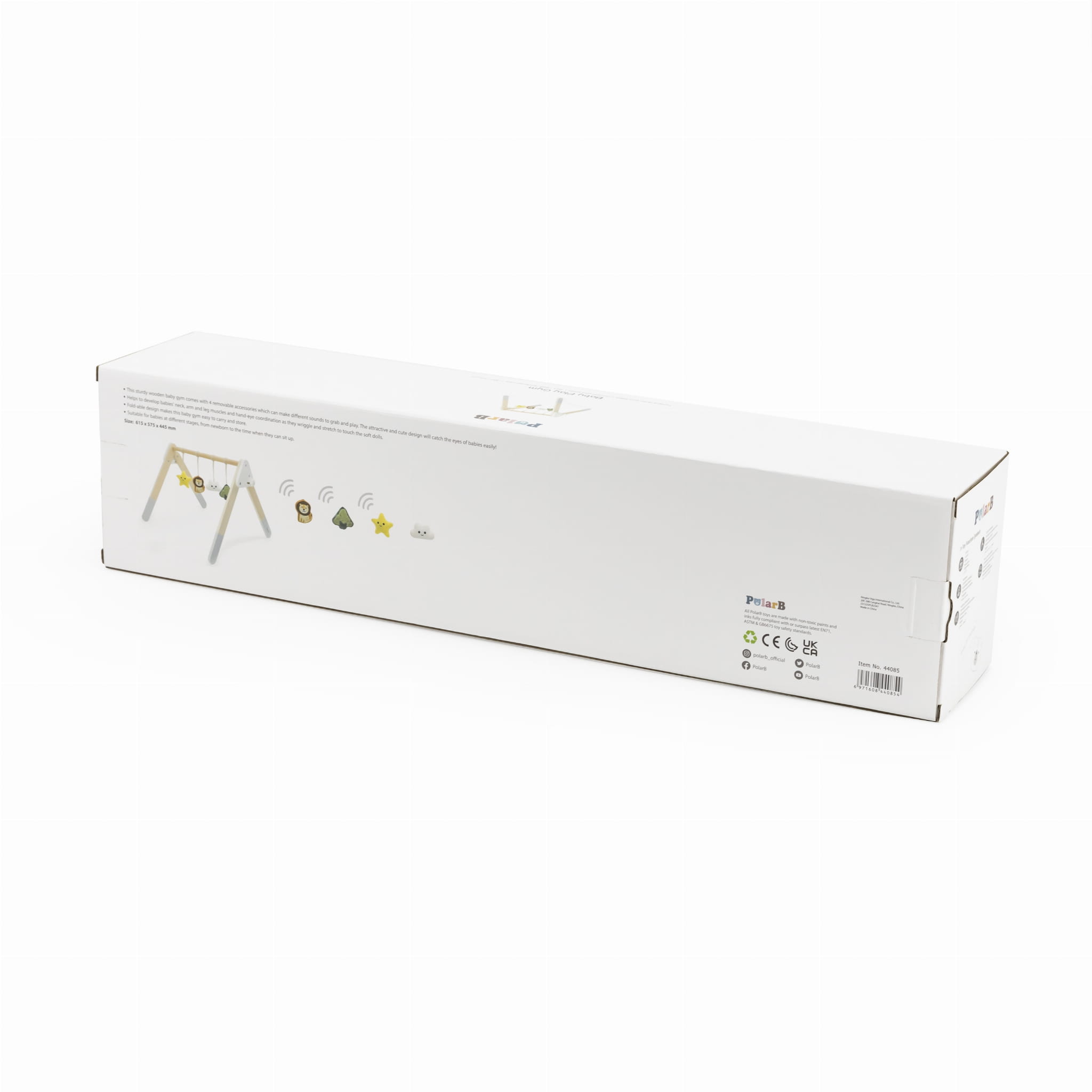 Wykonany z drewna i pomalowany bezpiecznymi farbami, stojak jest w pełni bezpieczny dla dziecka. Dzięki różnorodnym bodźcom sensorycznym, Baby Gym wspiera rozwój zdolności psychoruchowych, motoryki, koordynacji ręka-oko oraz logicznego myślenia. To doskonała zabawka, która łączy naukę z pierwszą zabawą maluszka.