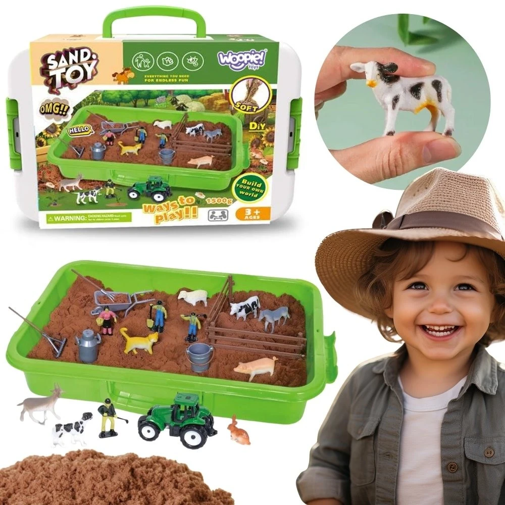 Piasek kinetyczny Farma w walizce Montessori dla dzieci 3+
