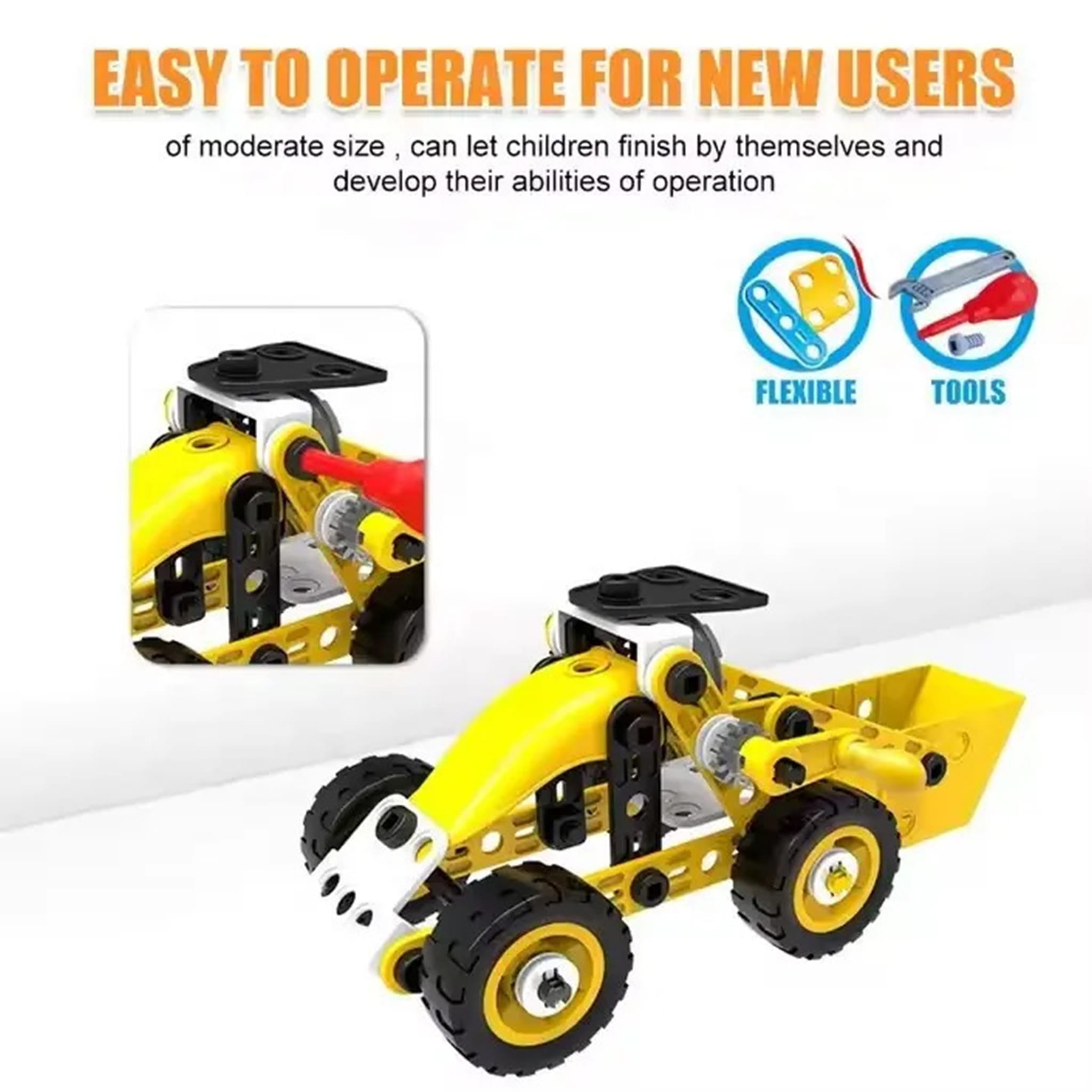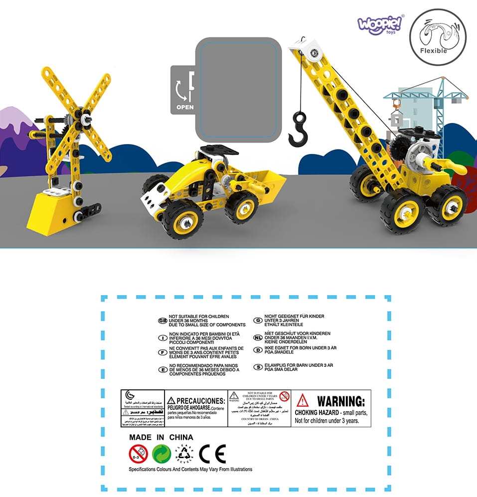 Zestaw pojazdów konstrukcyjnych od marki WOOPIE to 100 elementów, z których młody konstruktor może stworzyć 8 różnych modeli, takich jak dźwig, wiatrak, ciężarówka i inne maszyny budowlane! Dzięki prostemu systemowi skręcania i rozkręcania, dzieci z łatwością wejdą w fascynujący świat konstrukcji, rozwijając przy tym zdolności manualne, logiczne myślenie i wyobraźnię przestrzenną. To zabawka, która uczy zasad budowy maszyn i mechanizmów, a przy tym wprowadza w świat narzędzi i ich bezpiecznego użytkowania.