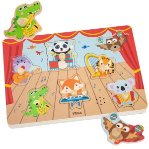 Puzzle Dźwiękowe Drewniane Zwierzęta z Instrumentami 18m+