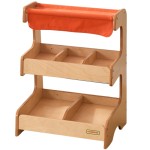 Dwupoziomowa konstrukcja straganu pozwala na segregowanie produktów w różnych komorach, co dodatkowo wspiera rozwój logicznego myślenia oraz umiejętności organizacyjnych. Materiałowy daszek nadaje zabawce realistyczny charakter i tworzy przyjazną przestrzeń do zabawy tematycznej.