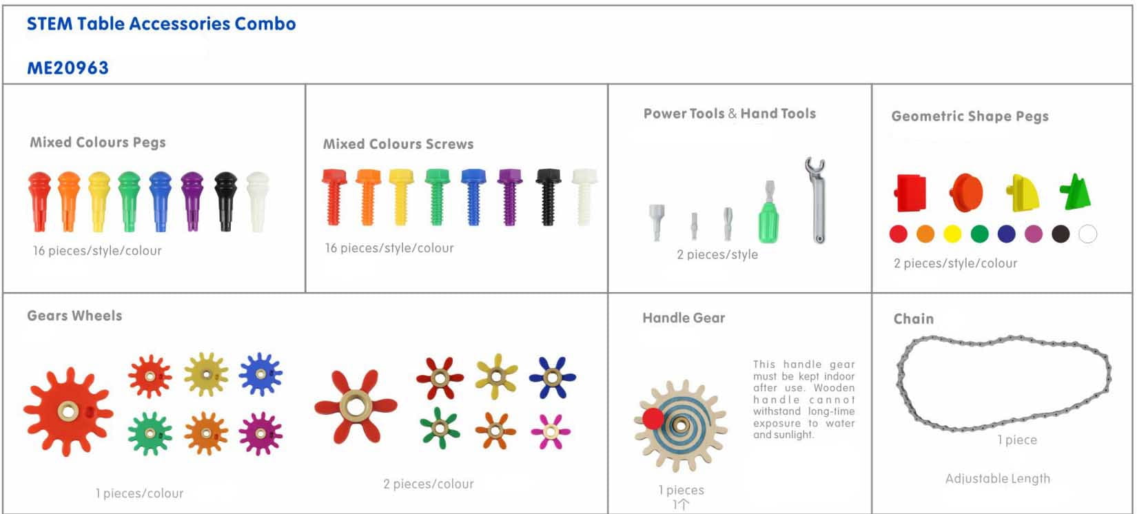 Drewniany stół edukacyjny STEM marki Masterkidz to rozbudowane narzędzie dydaktyczne wspierające rozwój kompetencji poznawczych, manualnych oraz logicznego myślenia u dzieci. Dzięki specjalnemu panelowi z otworami dzieci mogą tworzyć własne kompozycje, wykorzystując kołeczki, śrubki, koła zębate i inne elementy konstrukcyjne.