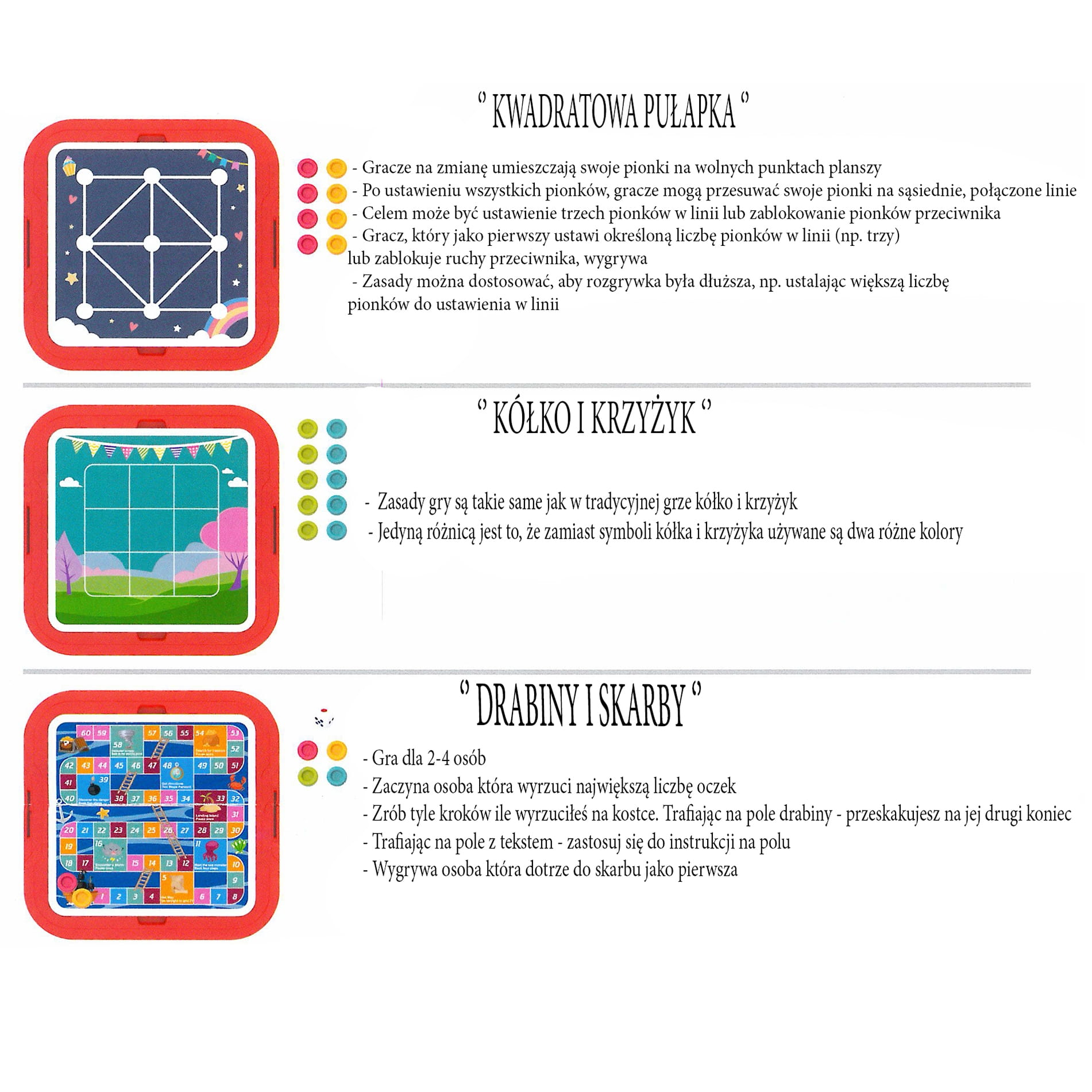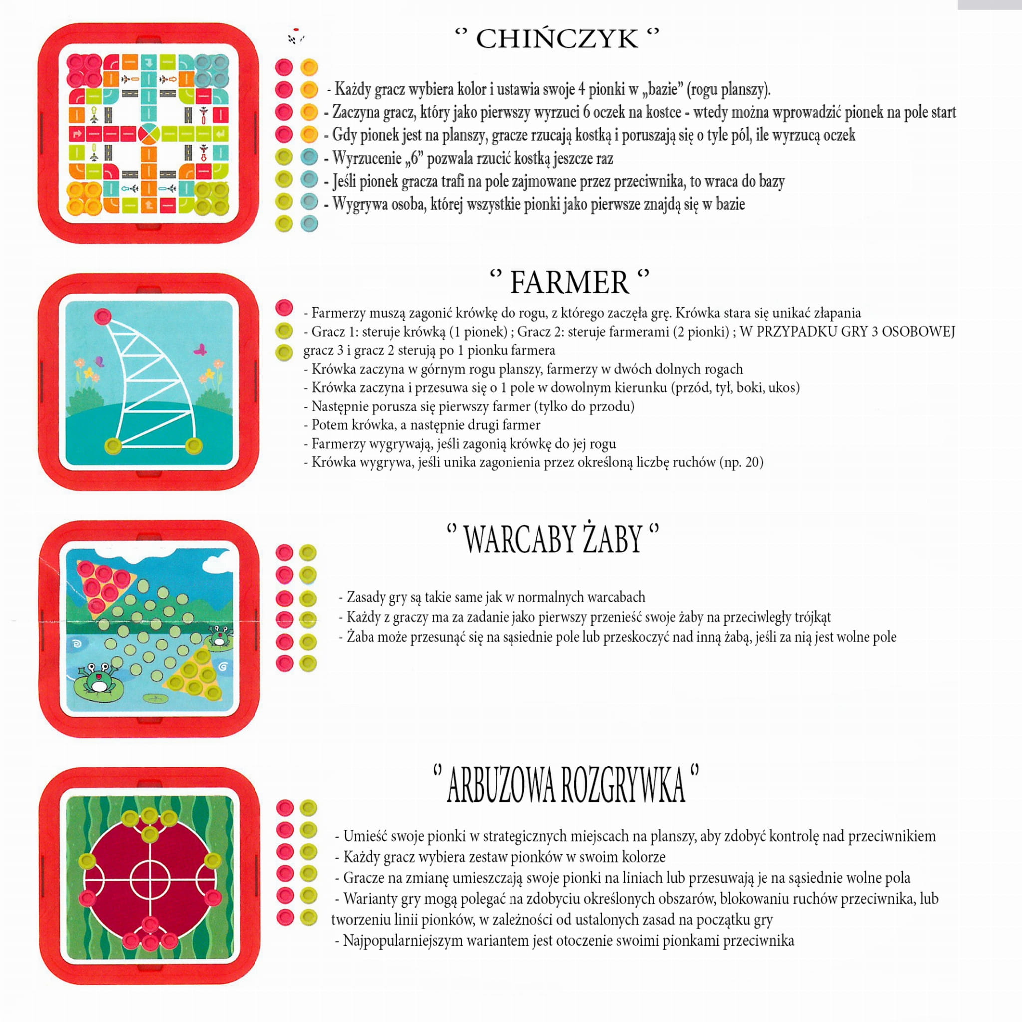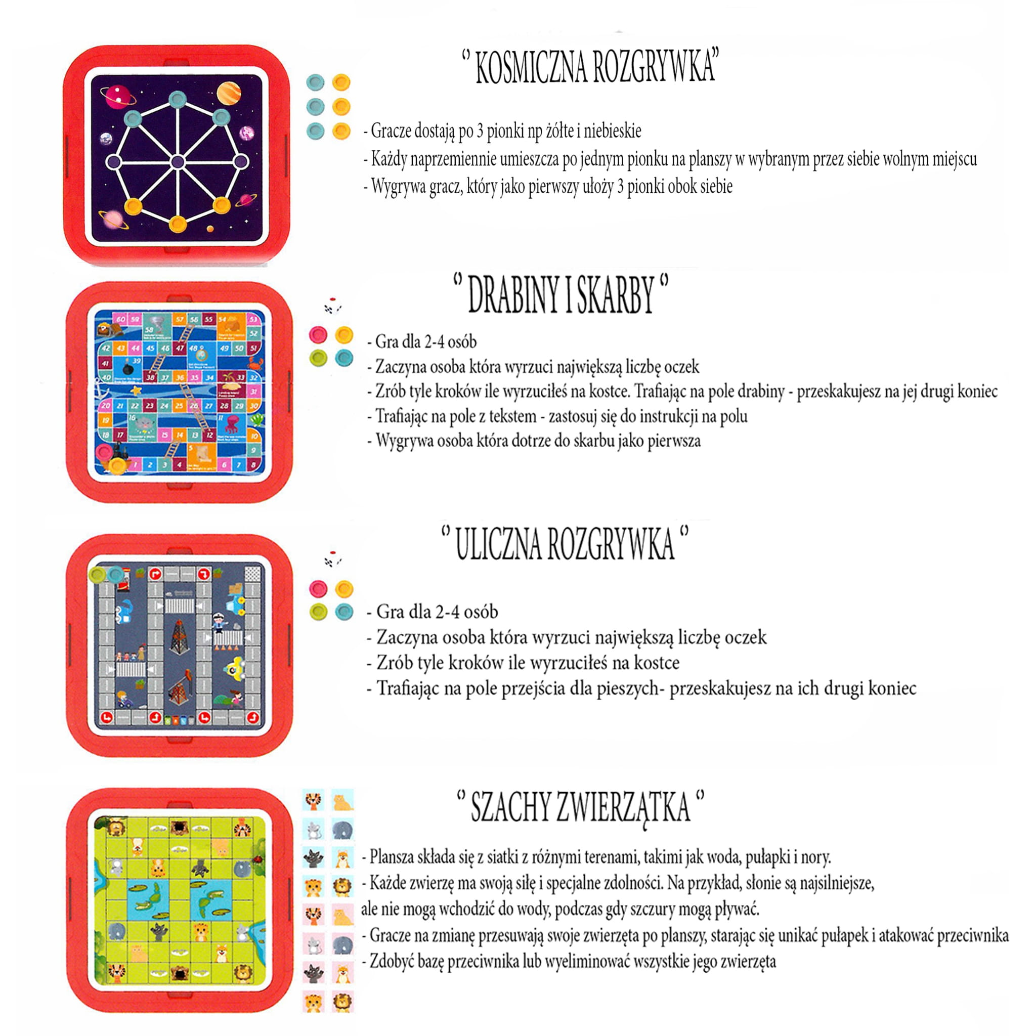 Stolik gier 10w1 od marki WOOPIE to niezwykle wszechstronny zestaw edukacyjny, który łączy zabawę z rozwojem logicznego myślenia. Gra oferuje szeroki wachlarz wyzwań, które wspierają umiejętności analityczne, koncentrację oraz cierpliwość. Dzięki różnorodnym zadaniom i łamigłówkom, dzieci mogą rozwijać zdolności motoryczne, strategiczne i logiczne myślenie w przyjemny sposób.