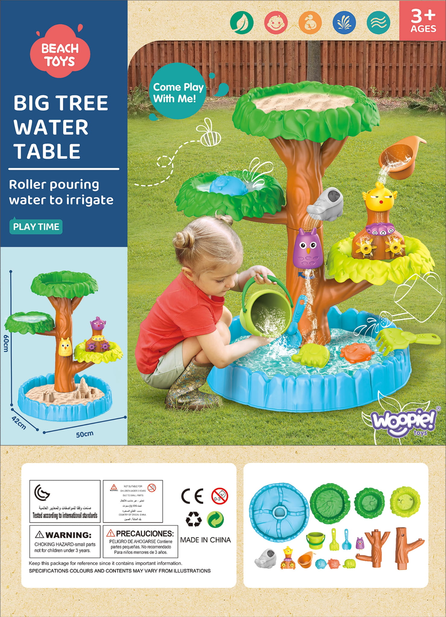 Stół Wodny 4-poziomowy w kształcie drzewa od marki WOOPIE jest idealny do zabawy z wodą i piaskiem. Zestaw zawiera wszystko, co potrzebne do niekończącej się zabawy - składany stół, wiaderko, nalewak, 3 foremki, 2 łopatki, konewkę. Twoje dziecko będzie mogło wlewać wodę do różnych zwierzątek, co spowoduje, że koła zębate zaczną się kręcić, dodając jeszcze więcej radości do i tak już wspaniałej zabawy. Zabawka jest przeznaczona do zabawy na zewnątrz: na plaży lub piaskownicy.
