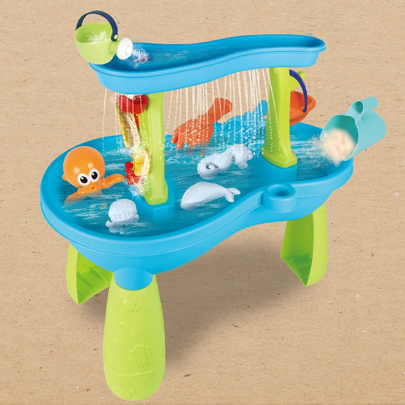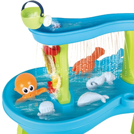 Stół Wodny Ośmiornica od marki WOOPIE jest idealną zabawka do zabawy z wodą i piaskiem. Zestaw zawiera 18 akcesoriów: 3 foremki, ośmiornicę, konewkę, koszyk, pojemnik do nabierania piasku i 2 łopatki. Dziecko może wlewać wodę do górnej części stołu, aby woda uciekała przez dziurki w dnie lub ściekała po wodnych młynkach. Zestaw jest przeznaczony do zabawy w domu, jak i na zewnątrz. Idealne do zabawy w domu i na plaży lub piaskownicy.