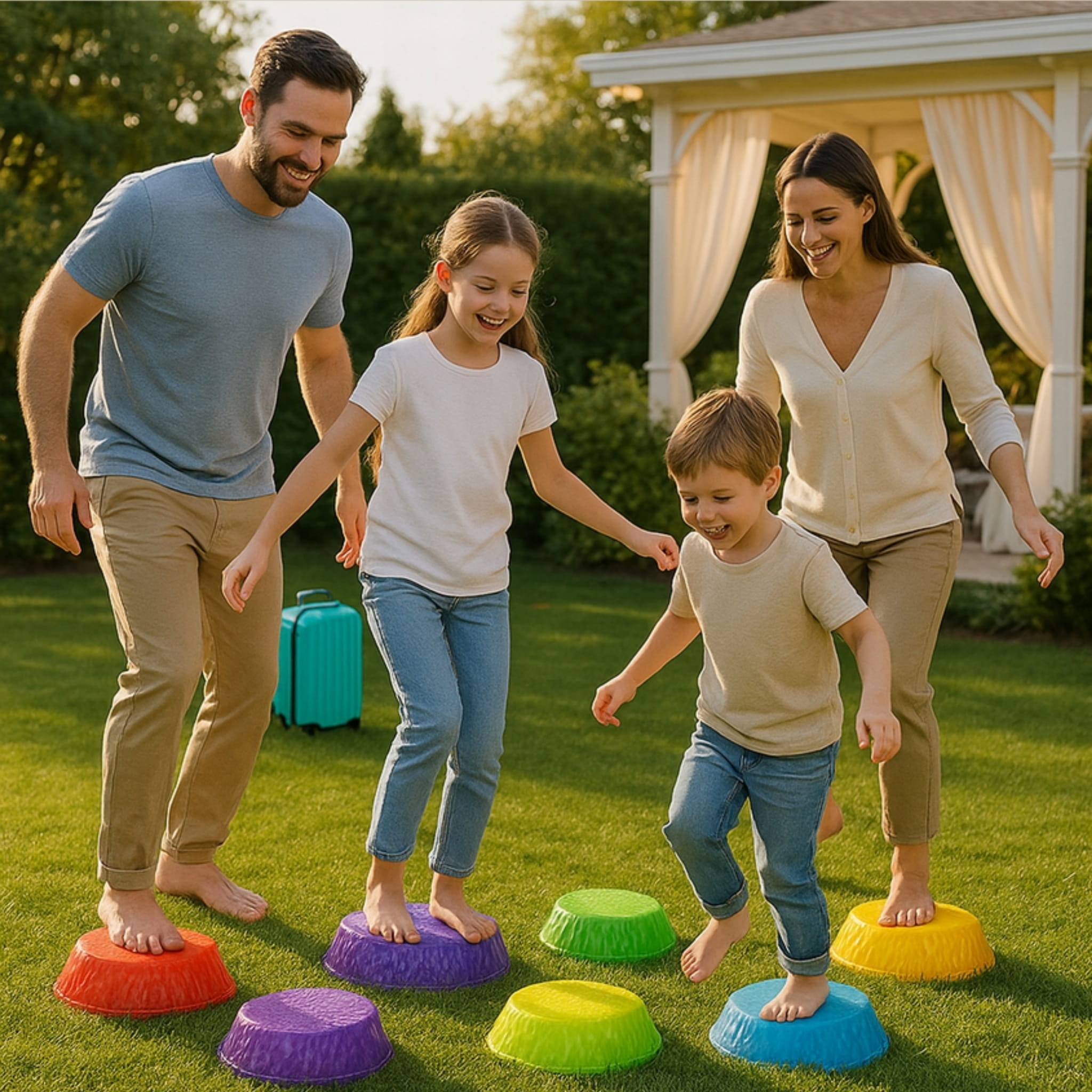 Kamienie różnią się wielkością, co pozwala tworzyć zróżnicowane trasy i stopniować poziom trudności. Ich powierzchnia jest antypoślizgowa, a podstawa stabilna – dzięki czemu zabawa jest bezpieczna zarówno w domu, jak i na świeżym powietrzu. Zestaw świetnie sprawdzi się w przedszkolach, gabinetach terapeutycznych oraz w domowym otoczeniu.