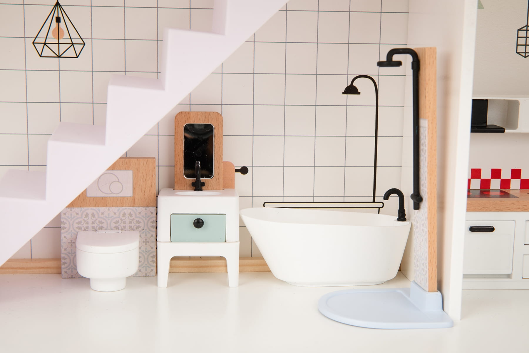 Domek dla lalek Tooky Toy wyróżnia się nowoczesnym, trzypiętrowym designem, wykonany w całości z drewna. Jego stylowe linie i współczesna estetyka sprawiają, że jest idealnym wyborem dla dzieci, które cenią nowoczesną architekturę. Domek oferuje trzy poziomy pełne atrakcji, z każdym piętrem wyposażonym w unikalne pomieszczenia i funkcje.
