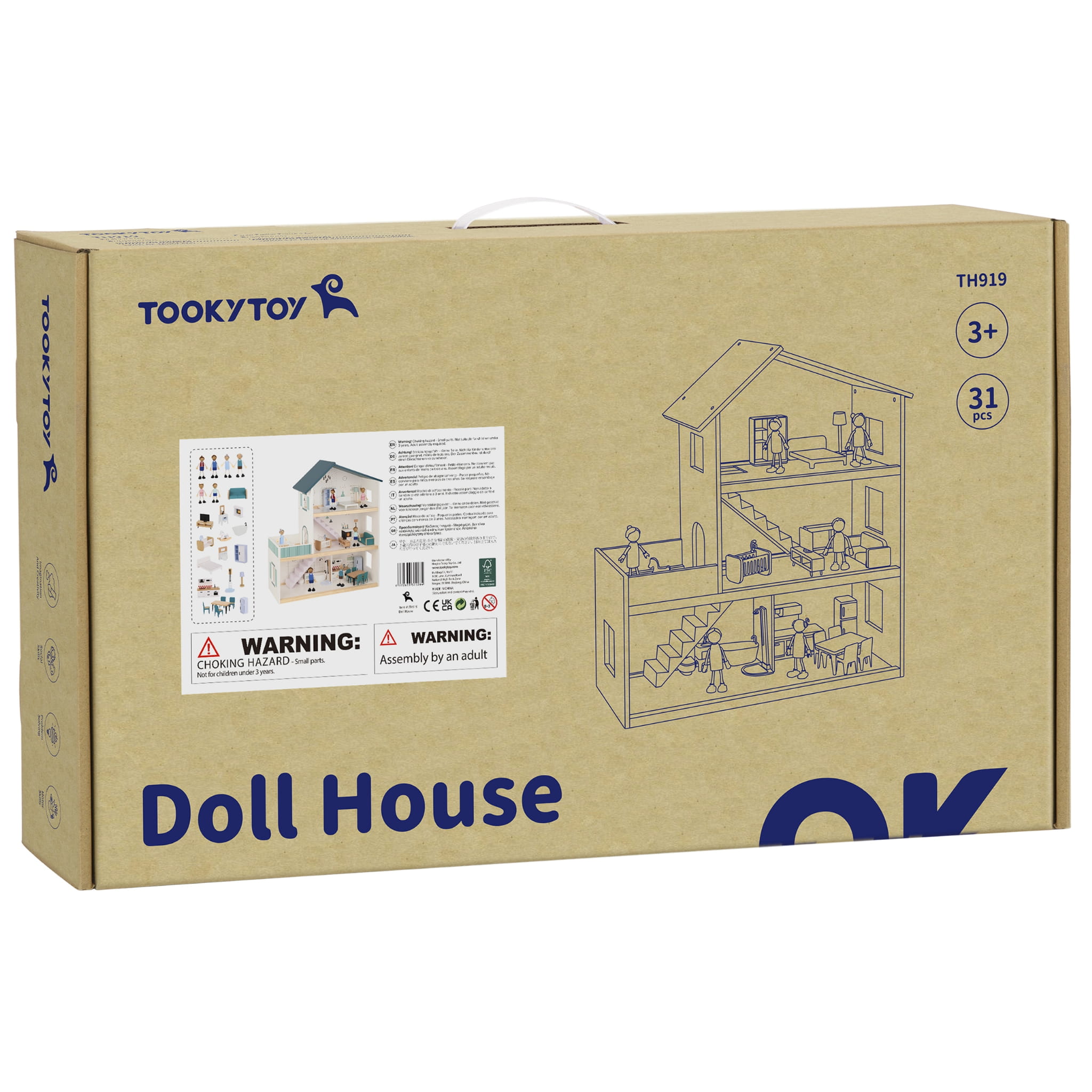 TOOKY TOY Duży Drewniany Domek dla Lalek + Figurki FSC
