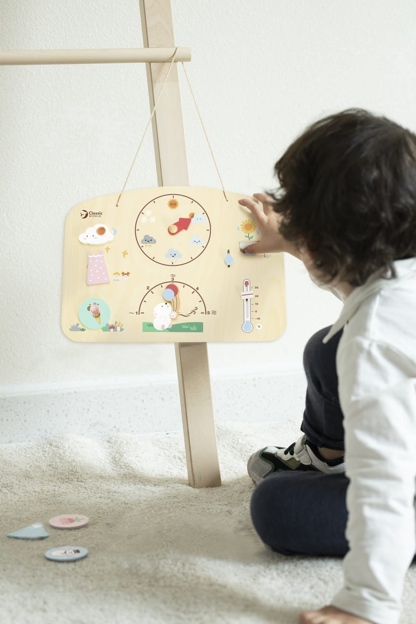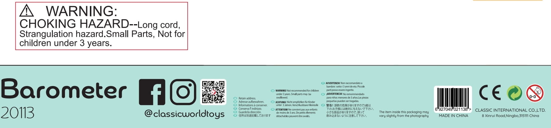 Edukacyjny Barometr od renomowanej marki Classic World to idealny produkt do nauki pogody. Edukacyjna zabawka jest wykonana z wysokiej jakości drewna, pomalowanego nietoksycznymi farbami bezpiecznymi dla dzieci. Barometr posiada zaznaczanie pogody jaką mamy obecnie, ilość opadów , siłę wiatru oraz temperaturę którą mamy na dworze. Dziecko może zabrać barometr w podróż i na bieżąco ustawiać warunki pogodowe za oknem.