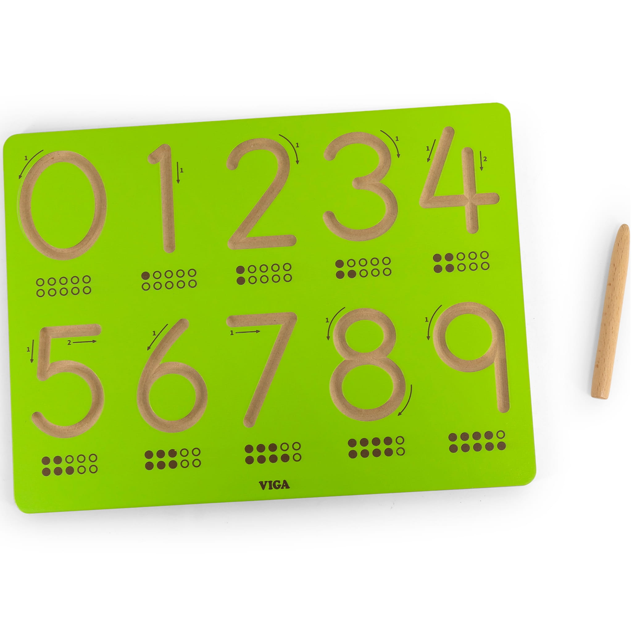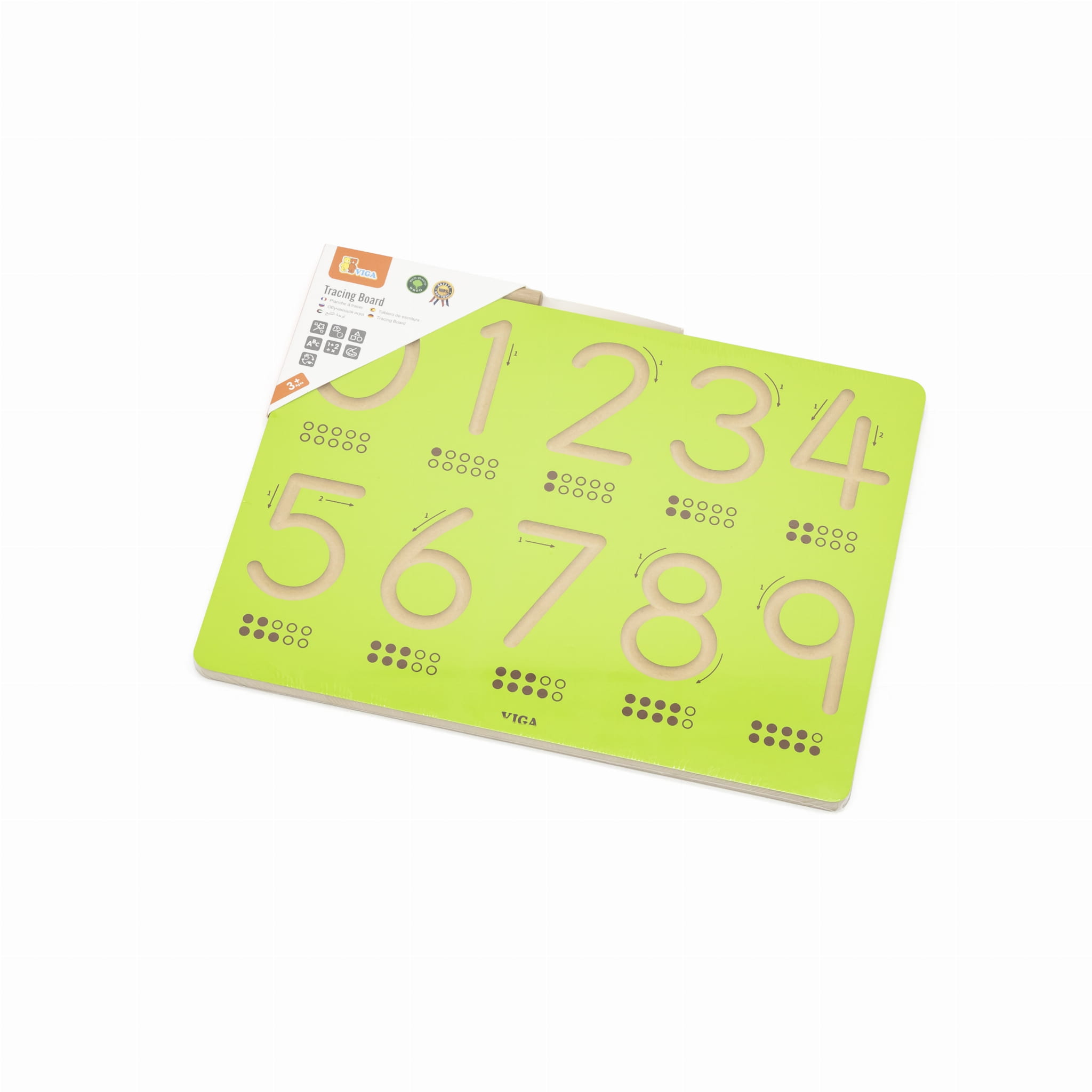 Tablica kreślarska od marki VIGA to idealna propozycja dla dzieci do trenowania rączki przed nauką pisania. Delikatnie wygrawerowane i zakrzywione rowki sprawiają, że idealnie nadaje się dla dzieci do kontrolowania ruchu dłoni i kształtowania pamięci mięśniowej poprzez wielokrotne śledzenie. Każda cyfra jest oznaczona strzałkami, co pomaga dzieciom w prawidłowej kolejności pisania. Tablica jest dostępna w kompaktowych rozmiarach, dzięki czemu dzieci mogą ją trzymać i używać na stole lub biurku.Dziecko poprzez zabawę uczy się ruchów odpowiedzialnych w przyszłości za rysowanie i pisanie, kształci płynność ruchów oraz ćwiczy koordynację wzrokowo - ruchową.