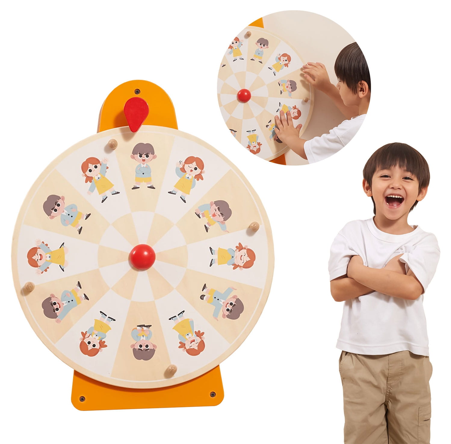 Tablica ścienna „Koło emocji” marki VIGA to edukacyjna pomoc dydaktyczna, która w przystępny i angażujący sposób wspiera rozwój emocjonalny i społeczny dzieci. Dzięki interaktywnej formie zabawy dzieci kręcą kołem i naśladują wylosowaną postać, ucząc się rozpoznawania emocji, mimiki oraz różnych zachowań.