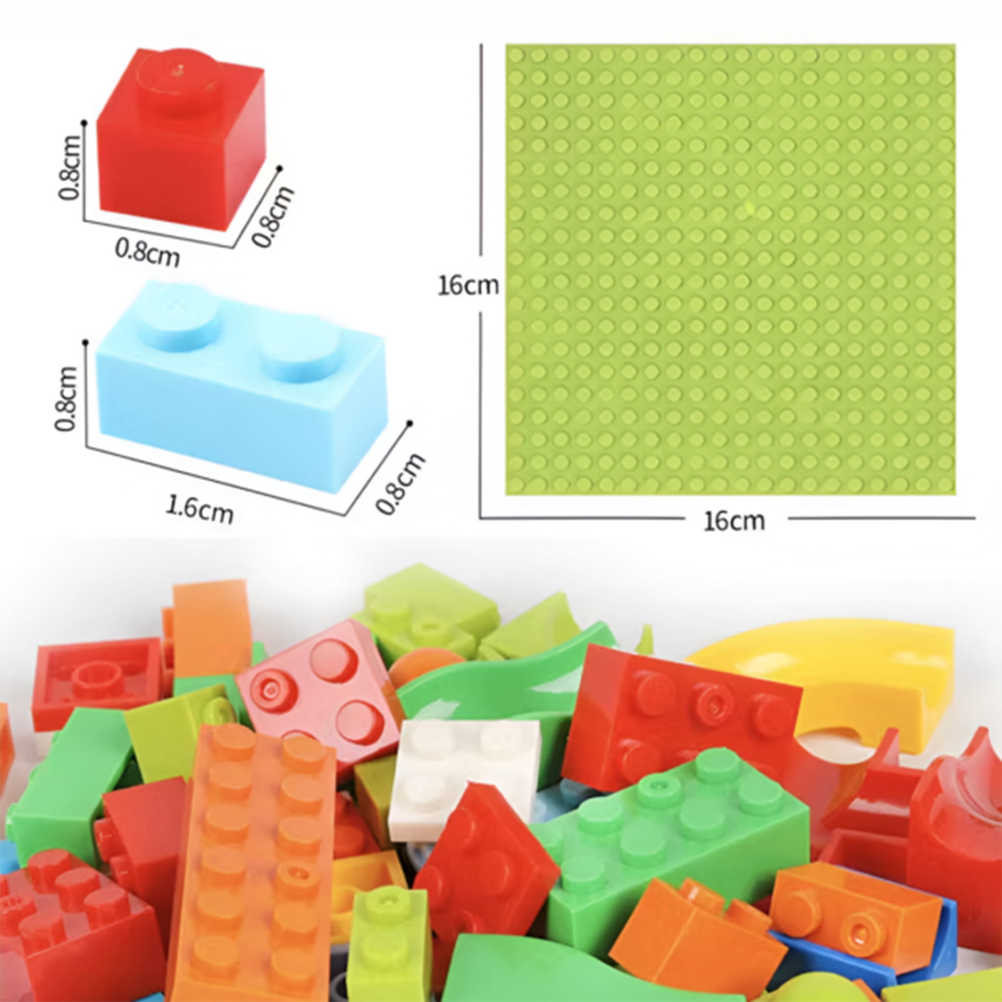 Wymiary produktu: przykładowy klocek: 1.6 x 0,8 x 0,8 (cm) / Jedna plansza 16 x 16 (cm)