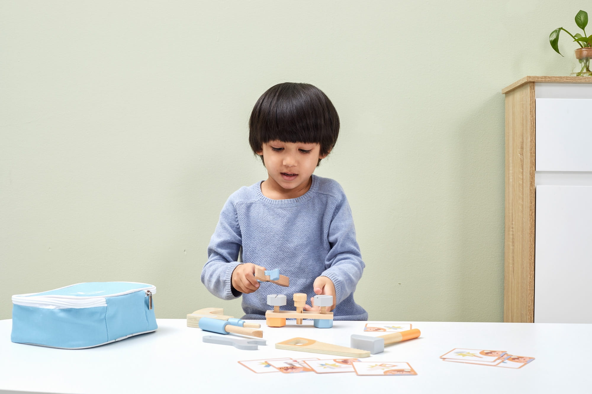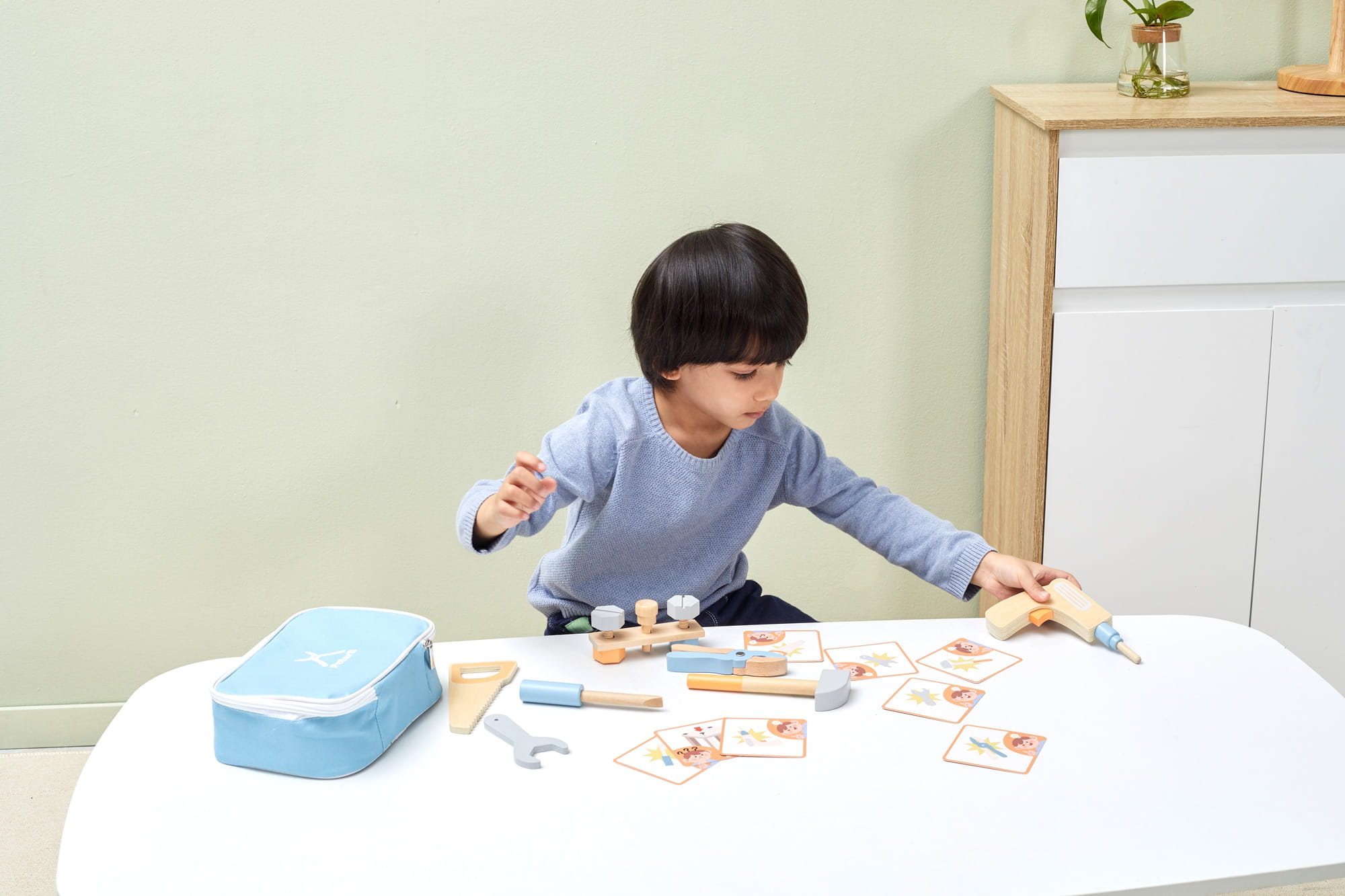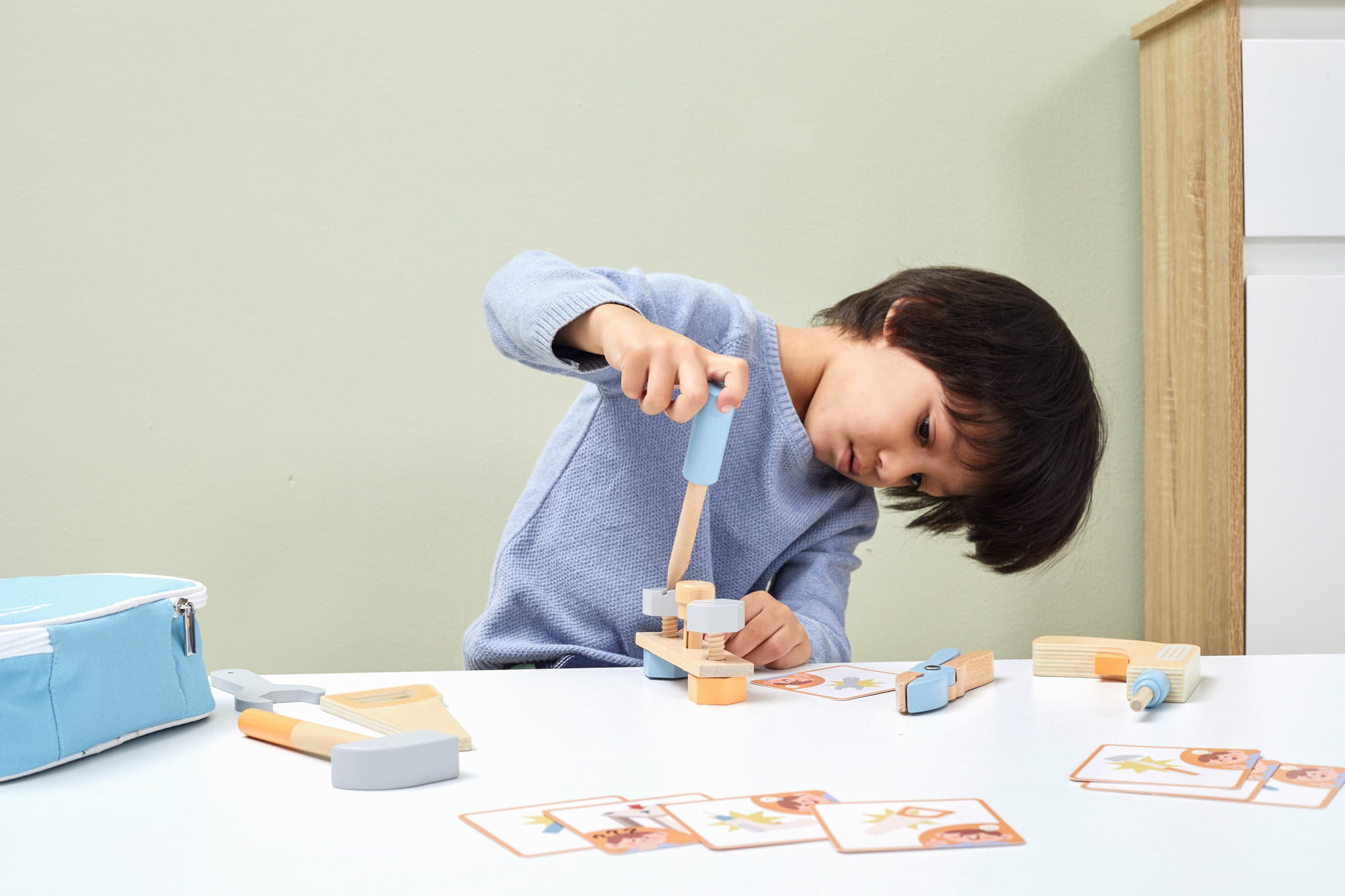 Drewniany Zestaw Narzędzi Viga Toys to świetny pomysł na prezent dla małego majsterkowicza. Od teraz każdy maluch będzie miał wszystko co mu potrzebne do reperowania, skręcania, zbijania i wszelkich prac remontowych. Gwarantuje super zabawę. Produkt zwiększa zdolności poznawcze - dziecko poznaje narzędzia i ich zastosowanie, rozwija wyobraźnie maluszka, poprawia zdolności manualne.