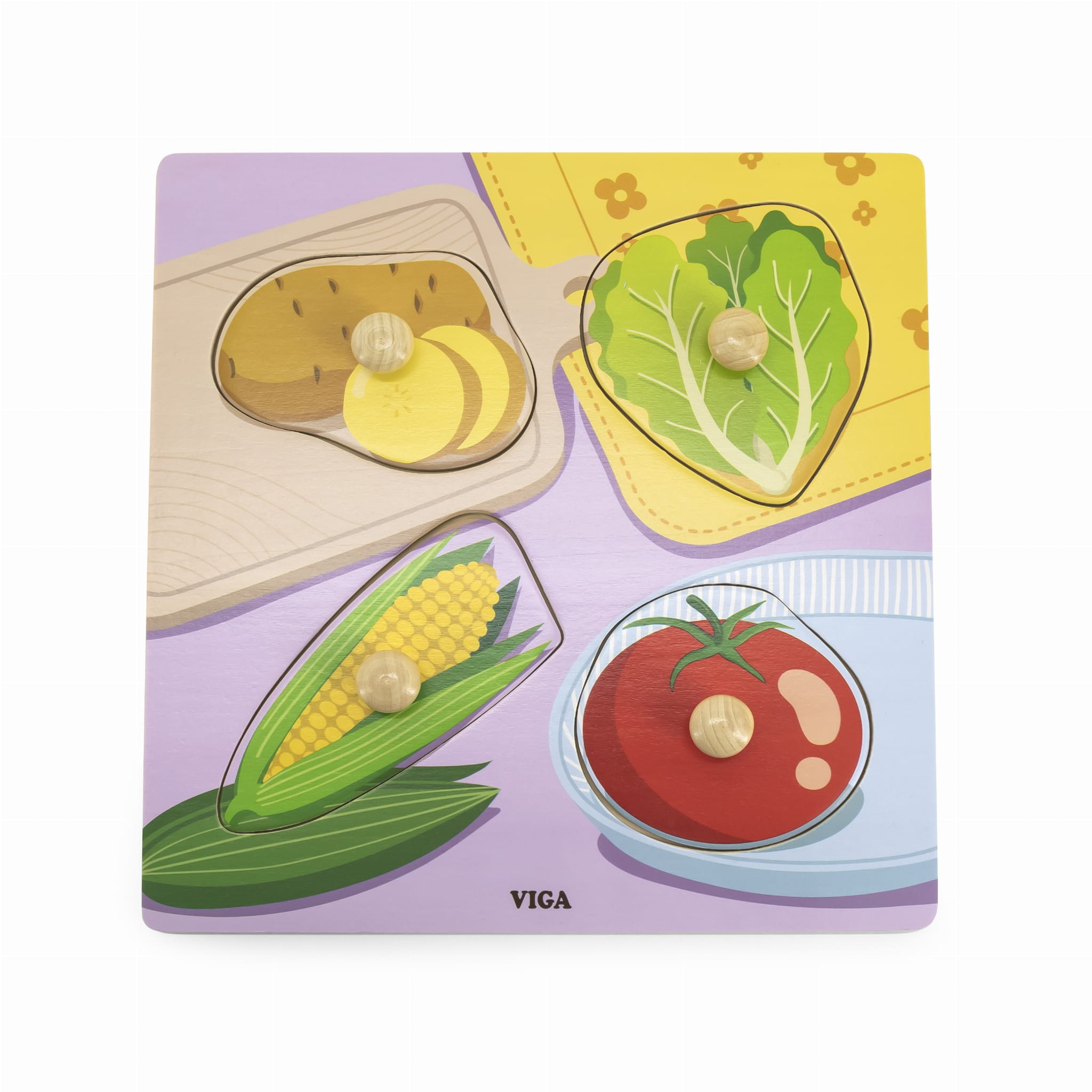 VIGA Drewniane Puzzle z Pinezkami Warzywa