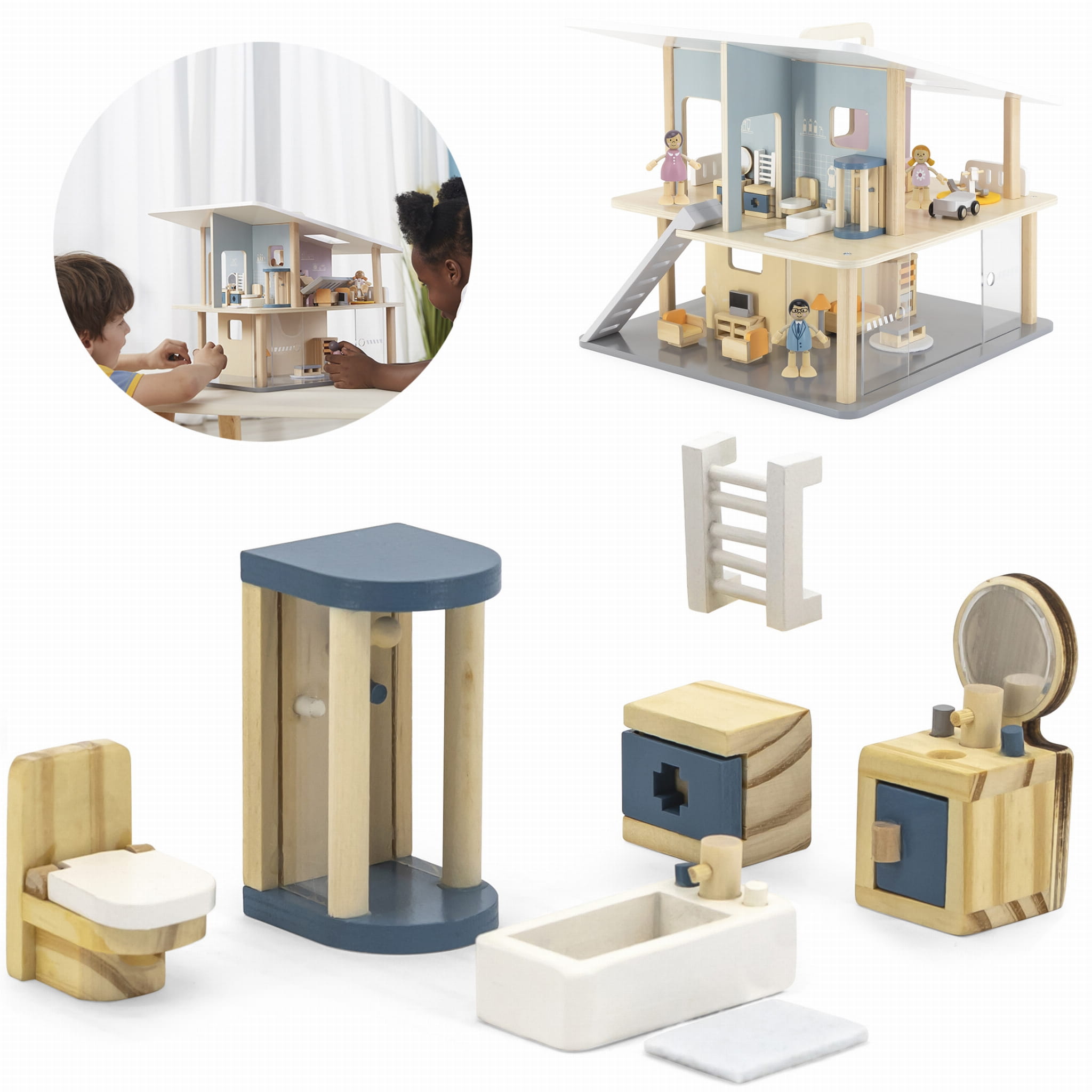 VIGA PolarB Zestaw Mebelków do Domku dla Lalek Łazienka