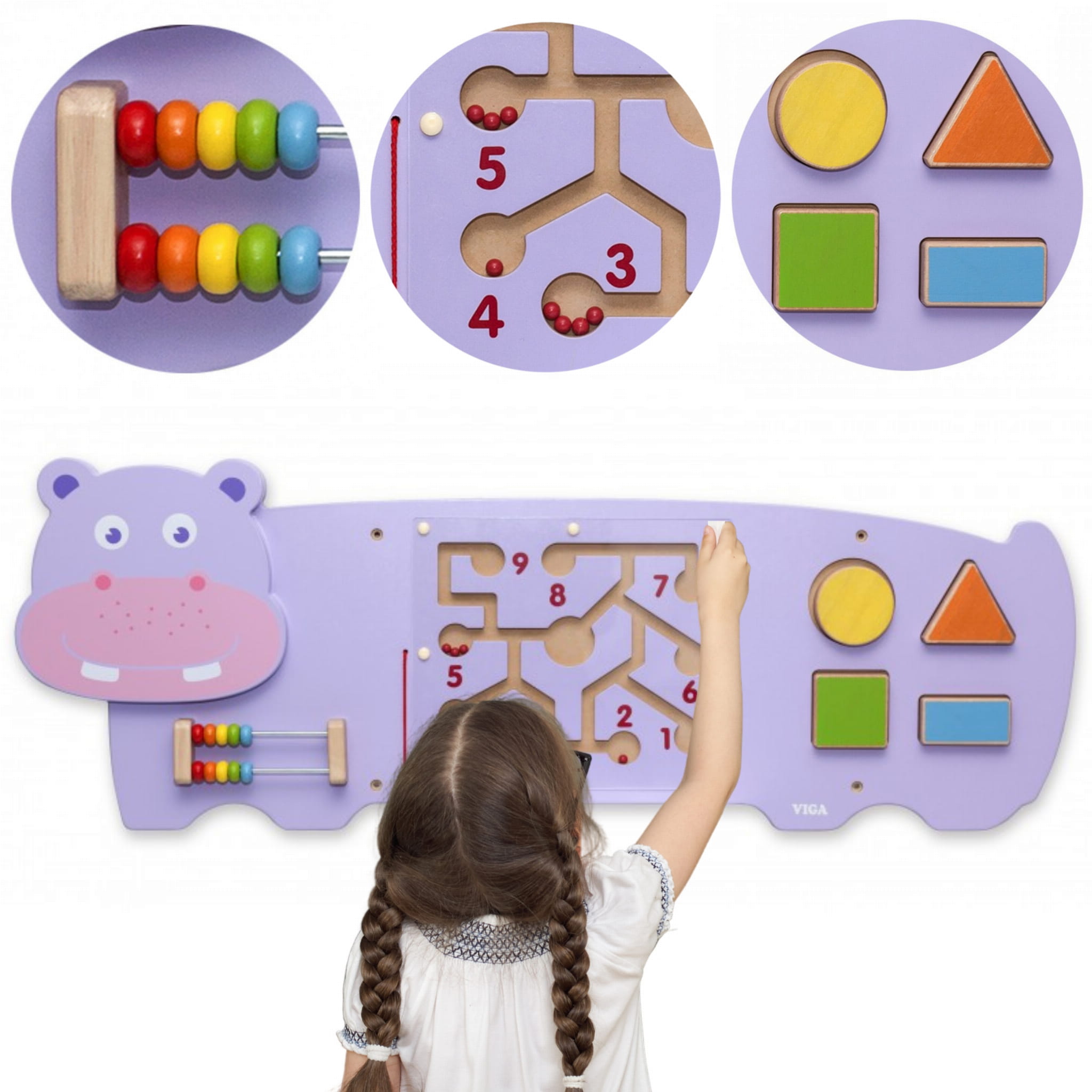 VIGA Tablica Sensoryczna Manipulacyjna Hipopotam Certyfikat FSC Montessori
