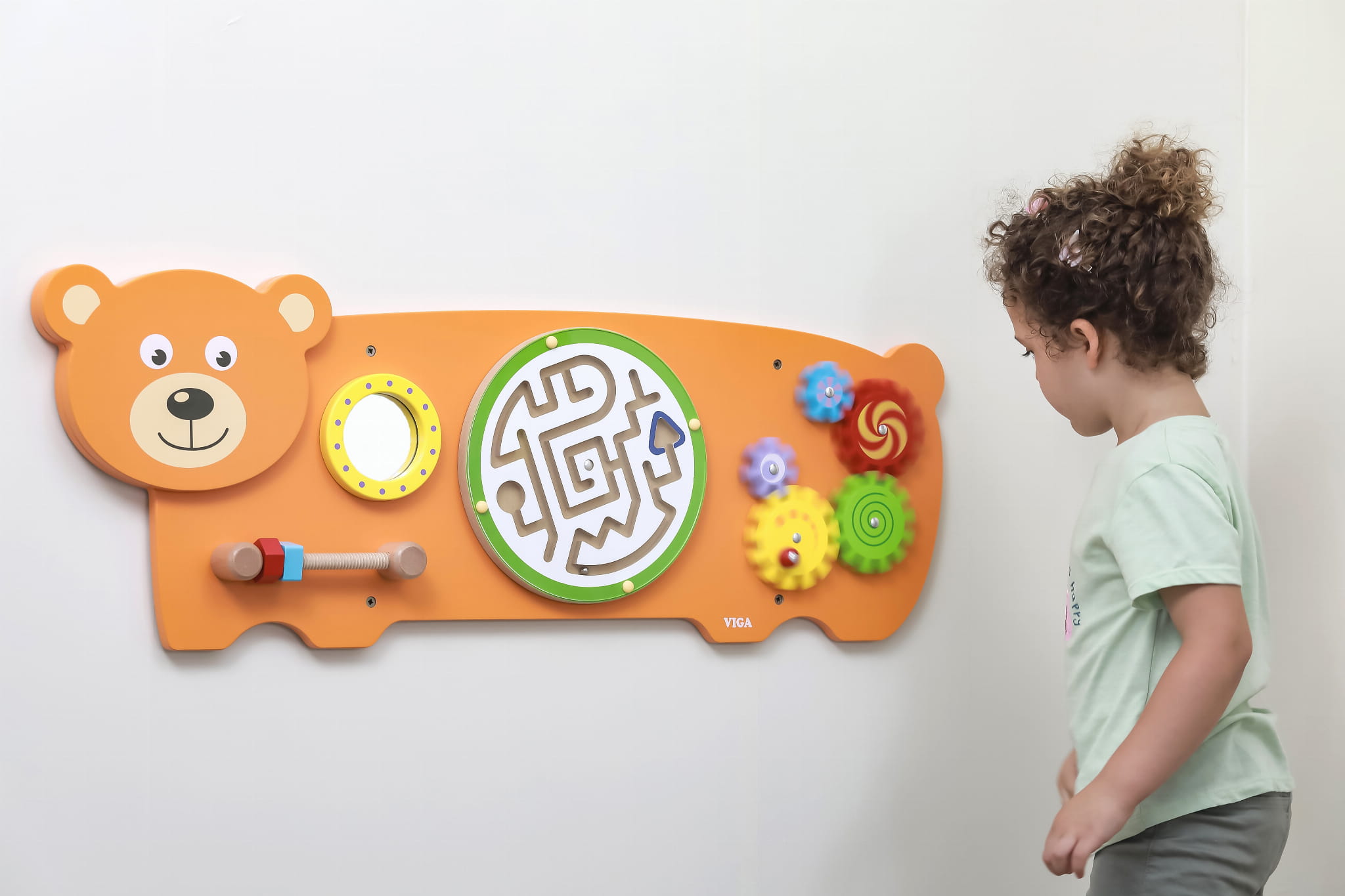 VIGA Tablica Sensoryczna Manipulacyjna Miś Certyfikat FSC Montessori