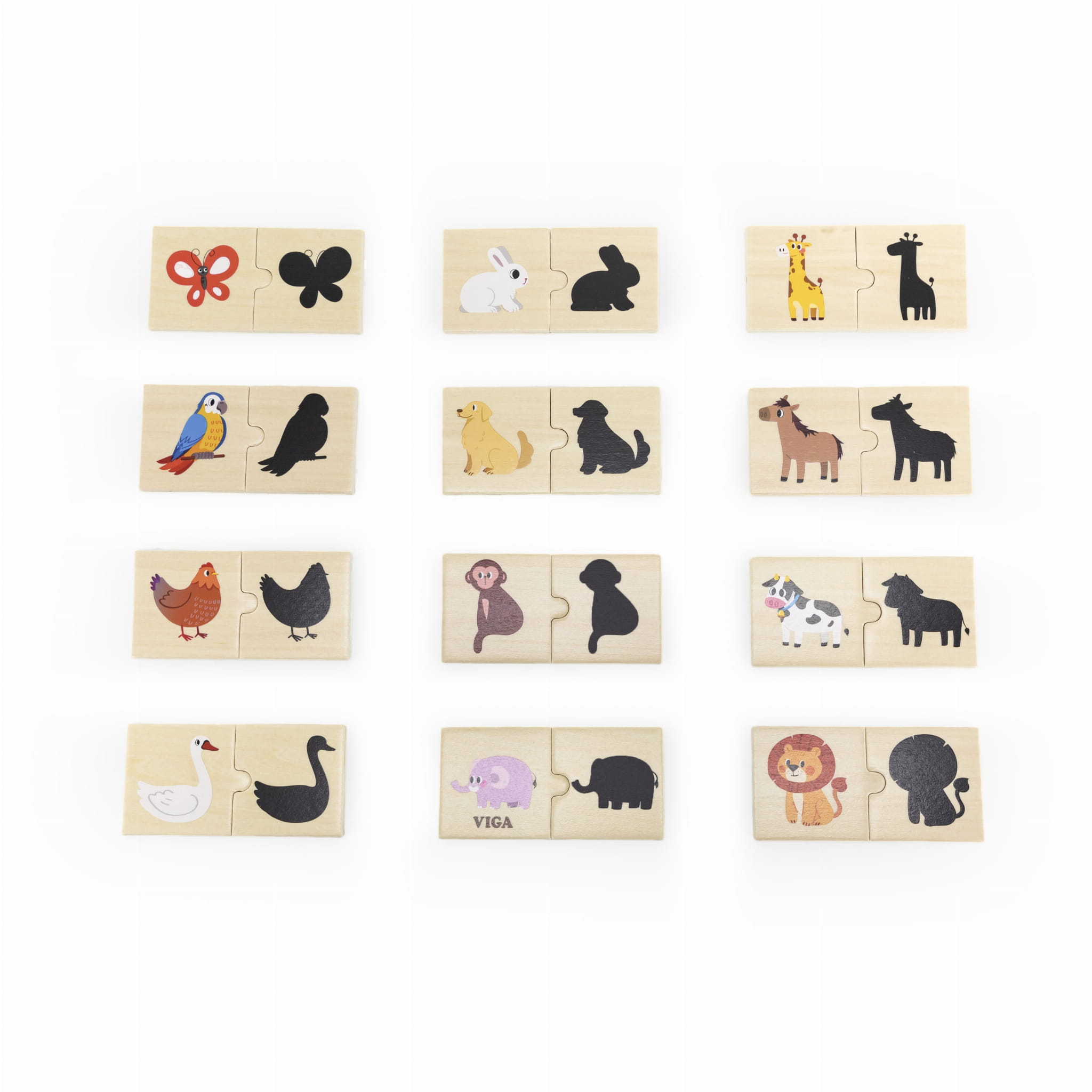 VIGA Zestaw Drewniane Puzzle Układanka Zwierzątka Dopasuj Cienie