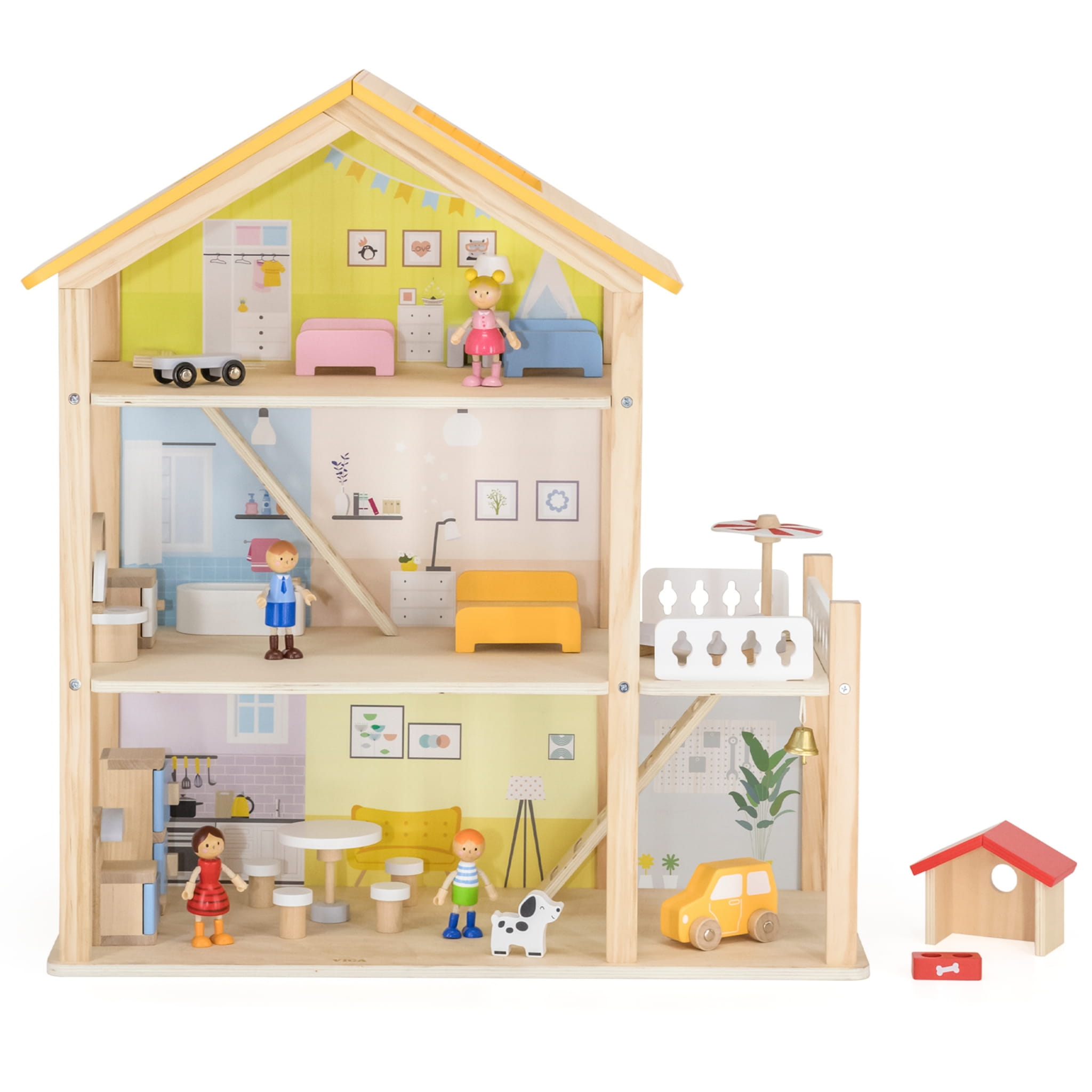 VIGA Zestaw Drewniany Domek dla Lalek z Laleczkami i Akcesoriami
