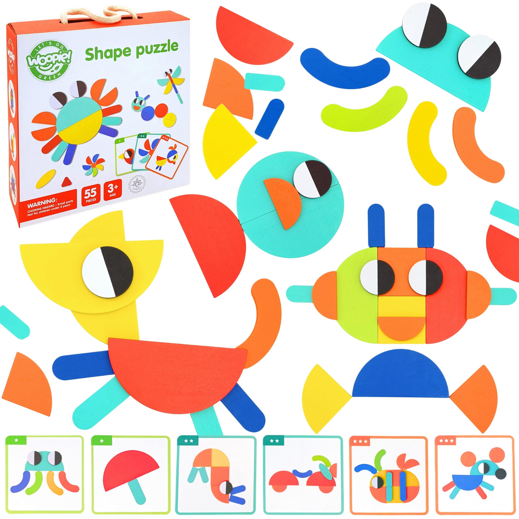 WOOPIE GREEN Drewniana Układanka Montessori 40 Wzorów do Odtworzenia 55 el. Certyfikat FSC