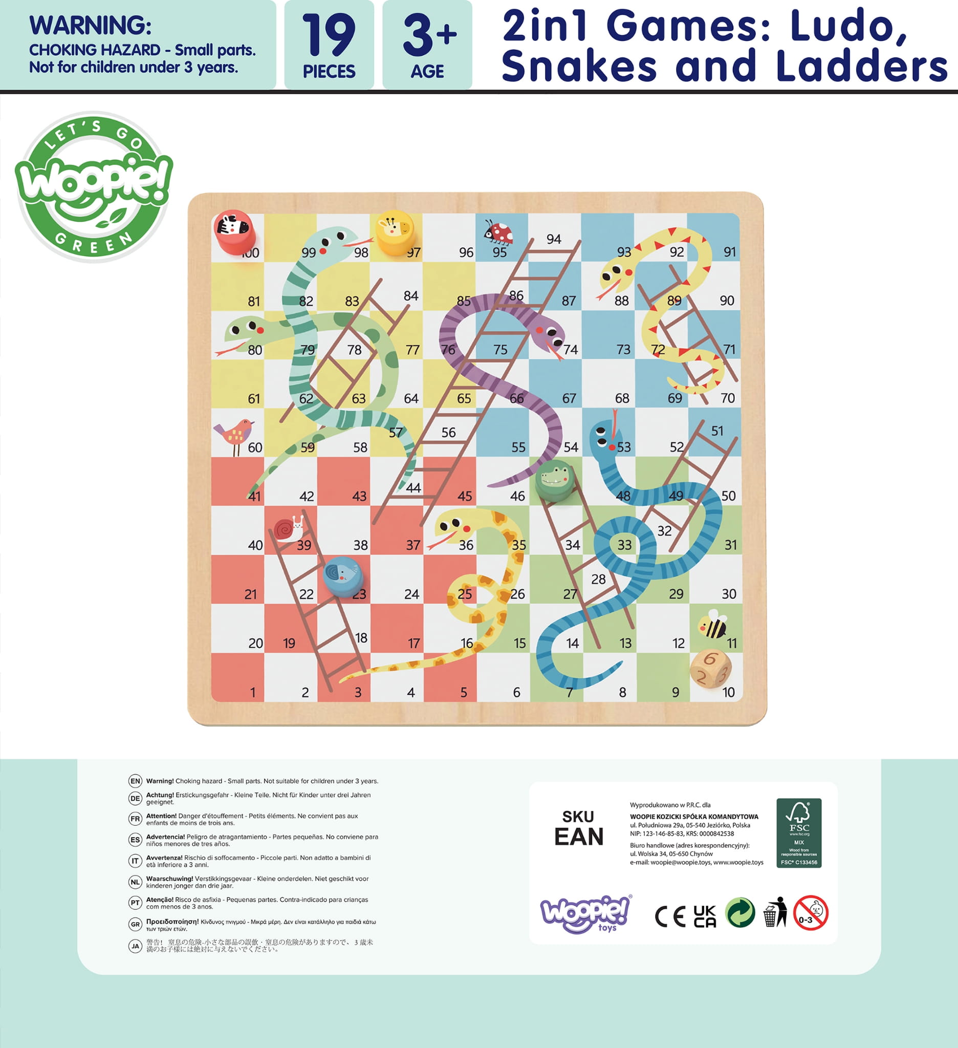 WOOPIE GREEN Gra planszowa to oryginalnie wykonana gra 2w1. Doskonała propozycja na wspólne spędzanie czasu z rodziną. Ludo/Chińczyk oraz Uwolnij Zwierzątka to dobrze znane gry, zapewnią długie godziny zabawy. Dziecko bawiąc się będzie nabierało umiejętności logicznego myślenia, analizy oraz poprawi pamięć. Żywe kolory oraz ilustracje sprawą, że gra przyciągnie wzrok każdego malca. Cały zestaw został wykonany z najwyższej jakości materiałów, dzięki czemu jest bezpieczny dla dzieci i środowiska.