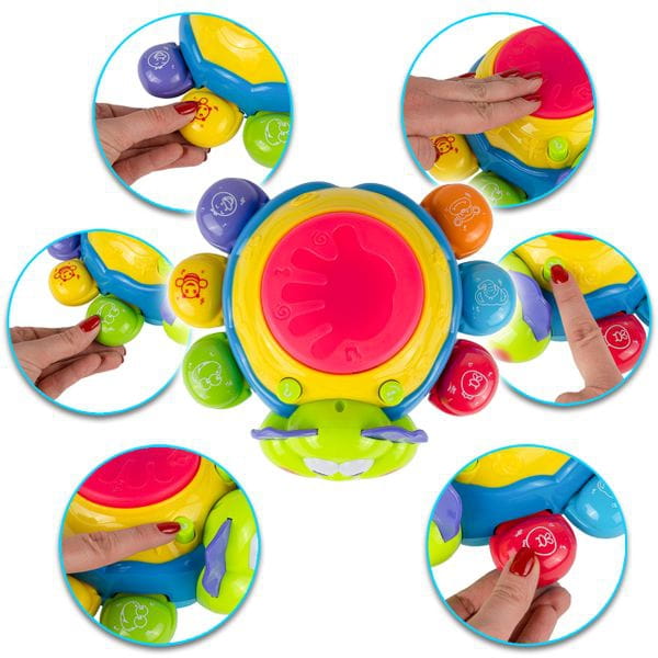 - - nauka zwierząt - na każdej nóżce inne zwierze, a po naciśnięciu na nóżkę usłyszymy nazwę zwierzęcia i dźwięk z nim związany,