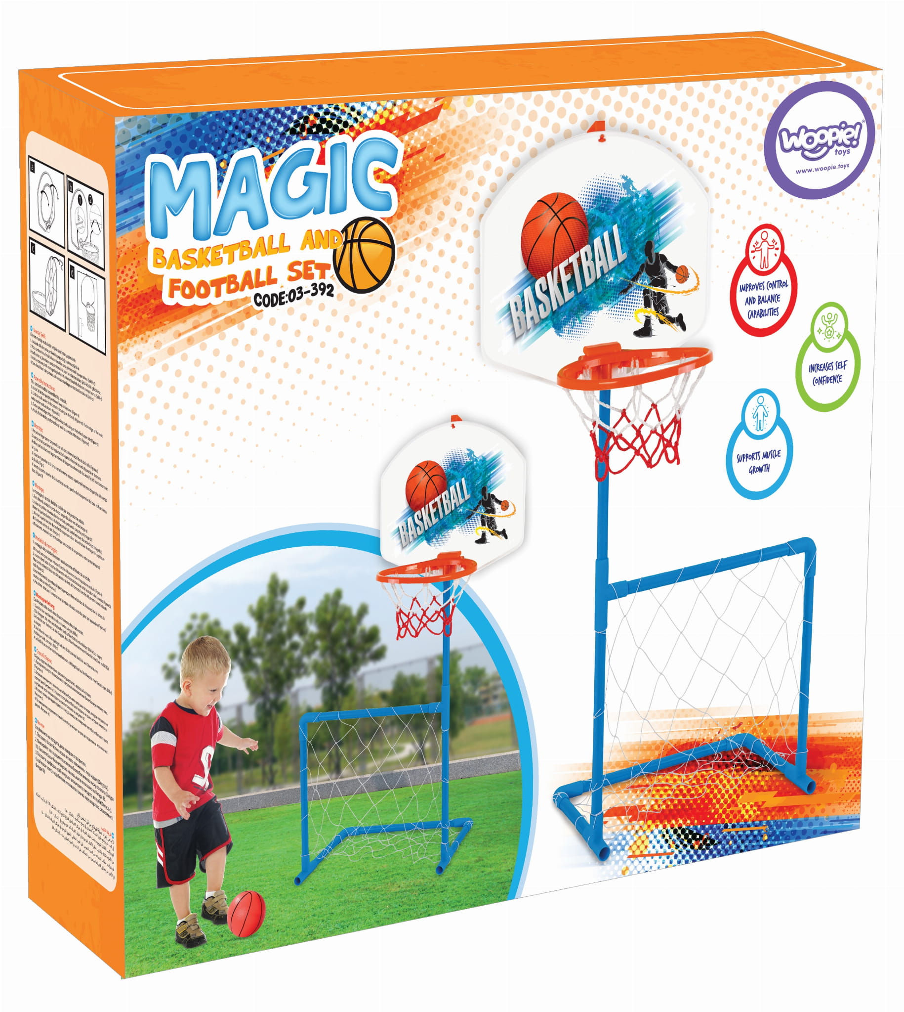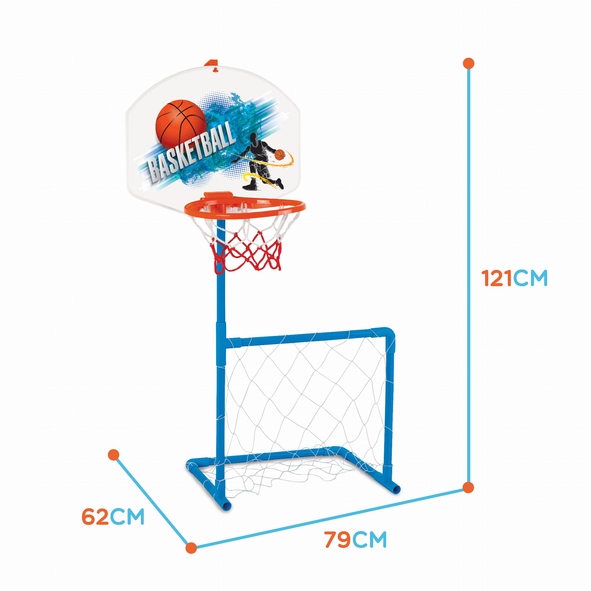 Zestaw sportowy 2w1 koszykówka i bramka marki Woopie jest super połączeniem sportowym dla najmłodszych dzieci! Dziecko może wybrać w co w danej chwili chce zabrać. Dziecko może grać samo w koszykówkę lub z przyjaciółmi w piłkę nożną - nigdy nie będzie się nudzić! Zestaw na pewno zachęca Twoje dziecko do uprawiania sportu. Aktywność dostarczy twojemu dziecku rozwój tzw. dużej motoryki, co jest idealne dla prawidłowego rozwoju dziecka. Wielkim plusem jest to, że produkt może być używany zarówno w domu jak, i na zewnątrz - Twoje dziecko będzie mogło grać wszędzie bez względu na pogodę. Koszykówka jest wysokości 121 cm - doskonała dla najmłodszych graczy!