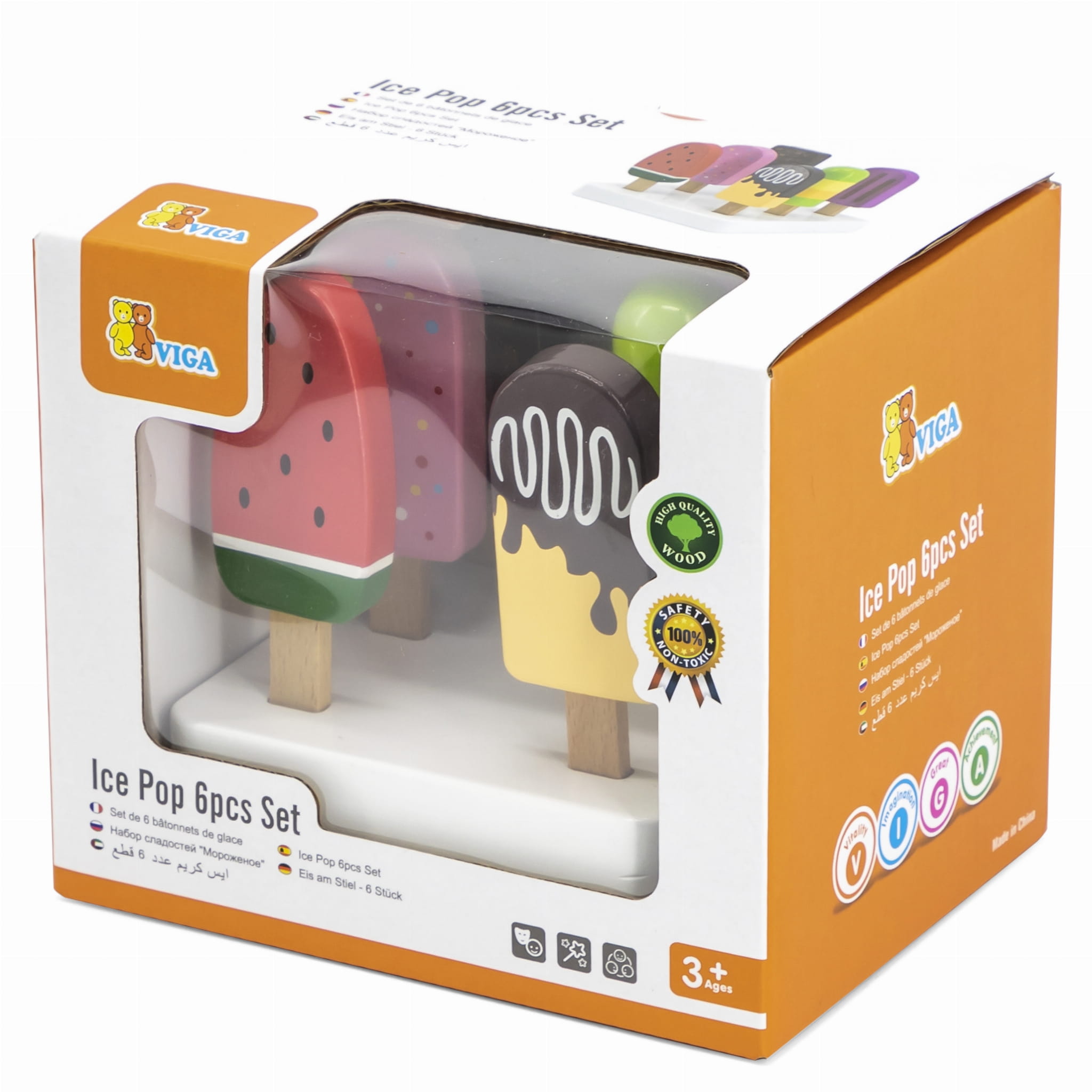 Zestaw Drewnianych Lodów na Patyku ze Stojakiem 6 szt. VIGA