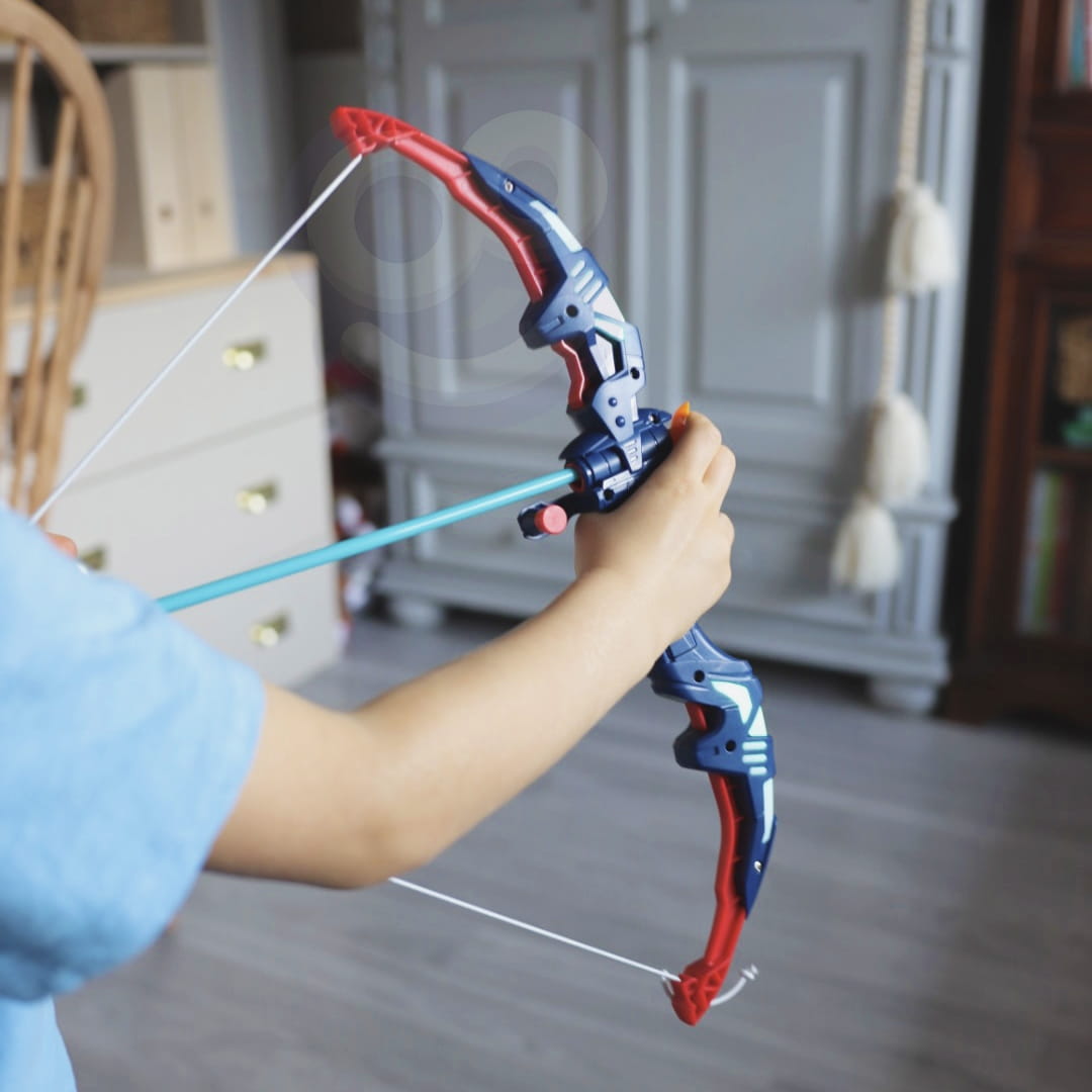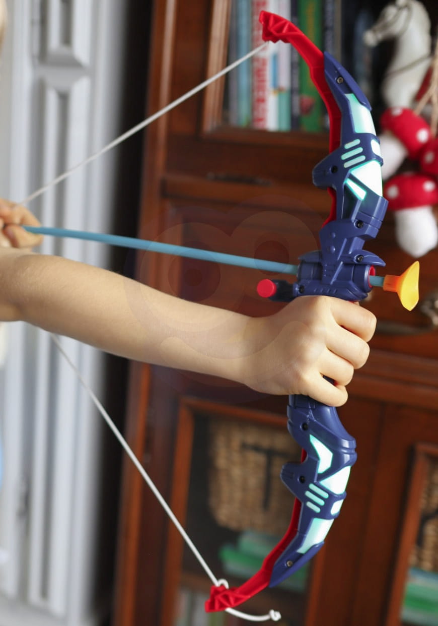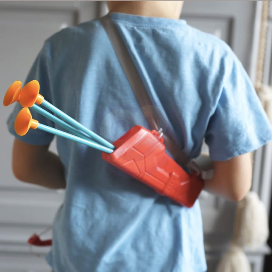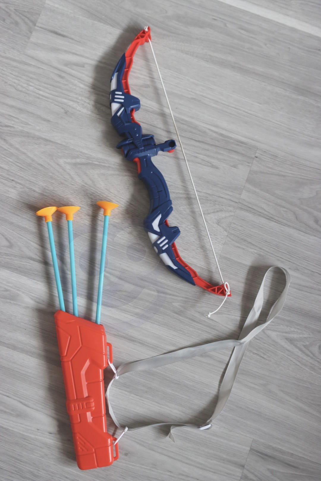 - - zestaw zawiera łuk, kołczan do trzymania strzał wraz z paskiem zakładanym na ramię oraz 3 strzały z przyssawką na końcu,