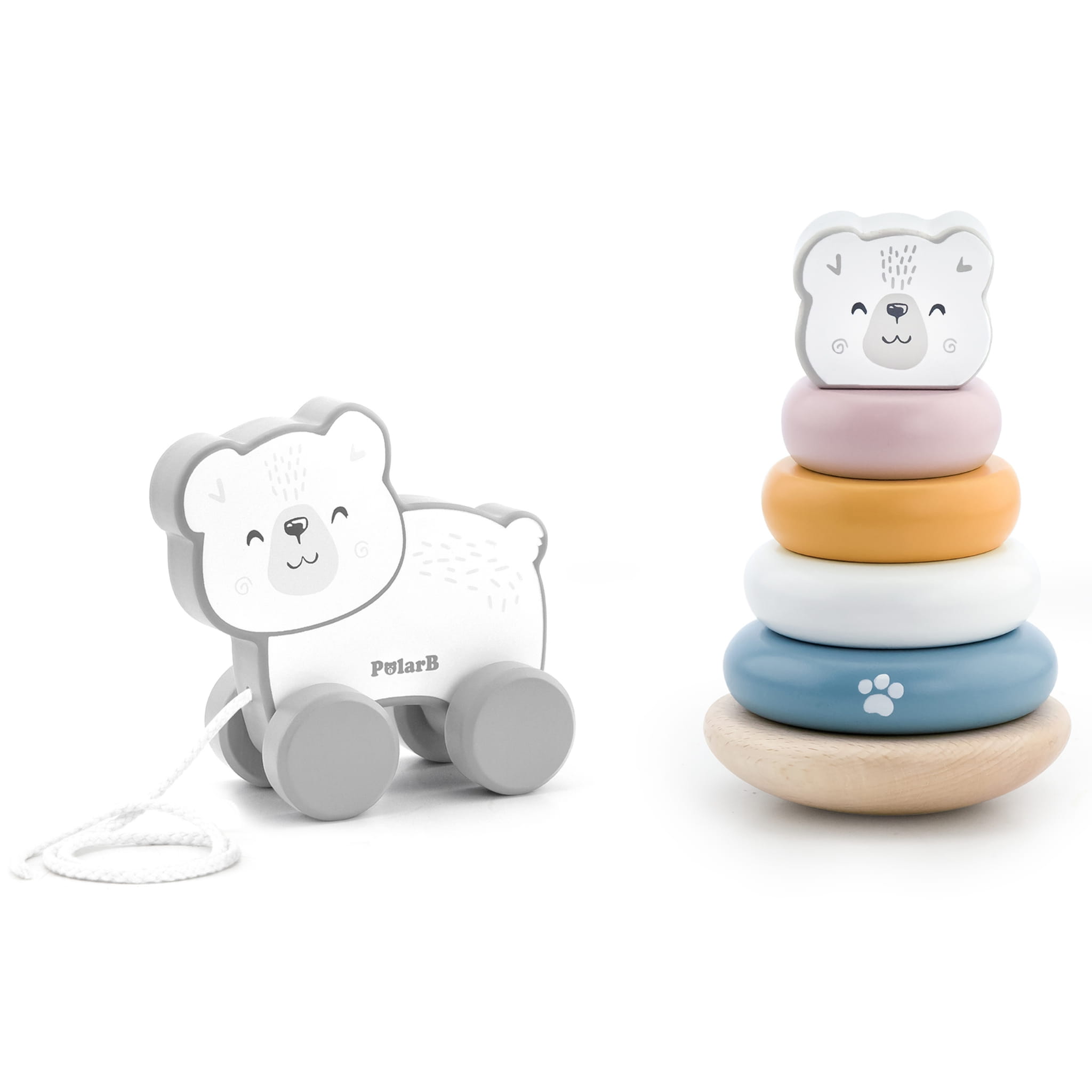 Zestaw Miś Polarny Drewniana Piramidka + Miś Polarny do Ciągnięcia VIGA PolarB