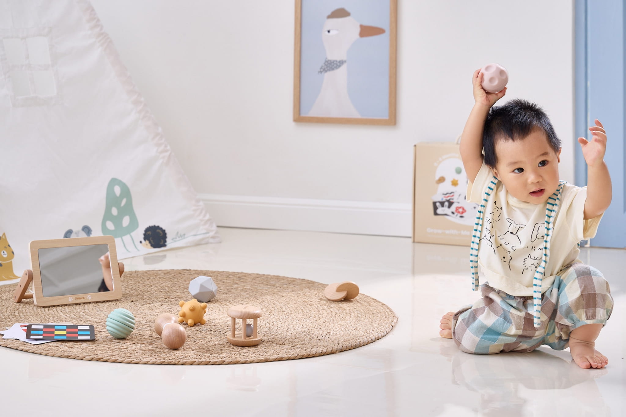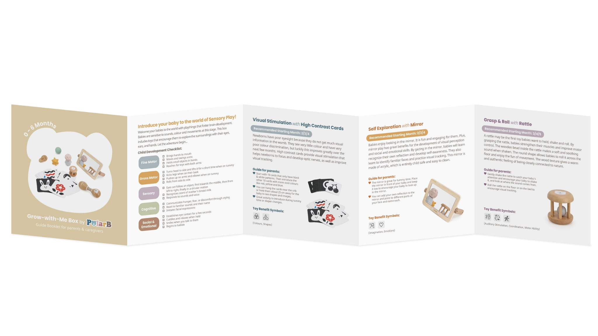 Grow-with-Me Box (0-6M) to zestaw sensoryczny stworzony specjalnie dla maluszków, aby wspierać ich rozwój od pierwszych dni życia. W pudełku znajdziesz zabawki, które stymulują wzrok, słuch i dotyk, pomagając w rozwijaniu koordynacji i umiejętności motorycznych. Każdy element został wykonany z najwyższej jakości materiałów, w tym drewna certyfikowanego przez FSC, co gwarantuje bezpieczeństwo i trwałość. To idealne rozwiązanie dla rodziców szukających kompleksowego wsparcia rozwojowego dla swojego dziecka.