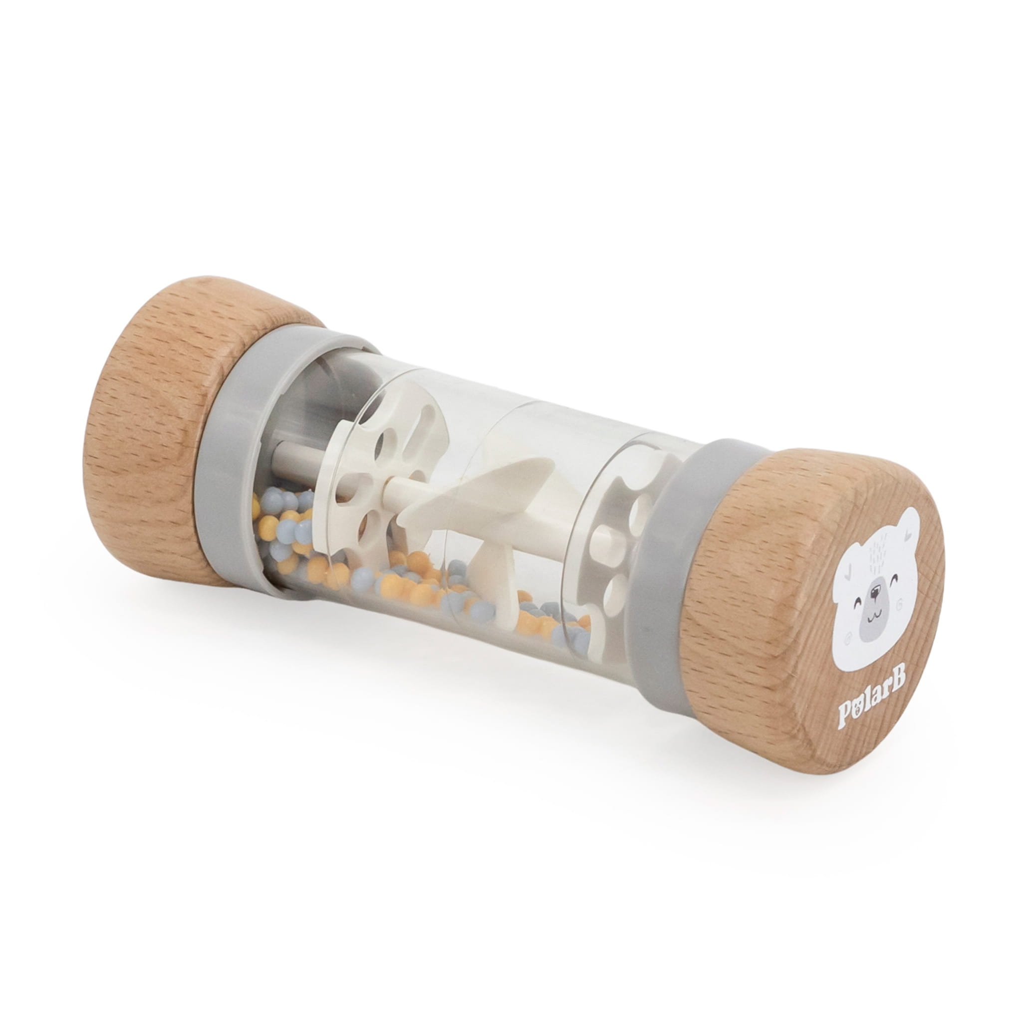 - grzechotka 'deszczowy patyczek' – pomaga rozwijać zmysł słuchu i wspomaga rozwój motoryki małej i dużej