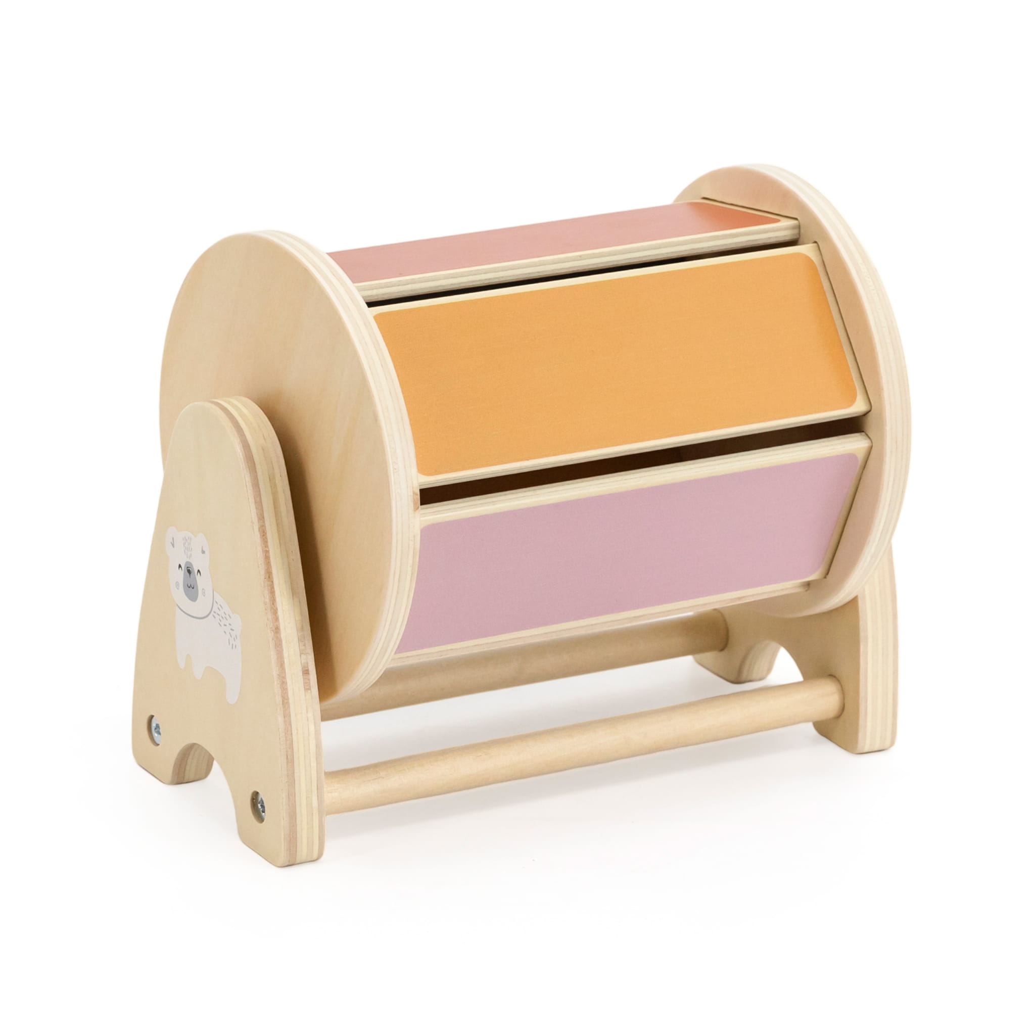 - obrotowy bębenek – stymuluje zmysł dotyku i słuchu poprzez swoją prostą, ale angażującą mechanikę