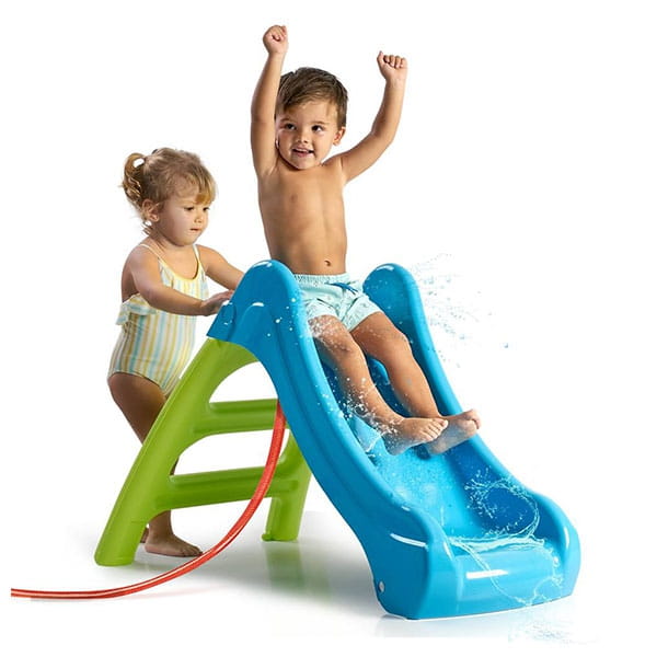Zjeżdżalnia First Slide od hiszpańskiej marki FEBER dla dzieci od 1 roku życia. Idealna jako pierwsza zjeżdżalnia dla dziecka. Funkcja 2w1 - możliwość podłączenia węża ogrodowego do ślizgu i już mamy wodny plac zabaw idealny w upalne dni. Można łatwo złożyć i schować do garażu. Produkt wykonany z wytrzymałego i odpornego plastiku pokrytego powłoką ANTI-UV, która chroni przed blaknięciem.